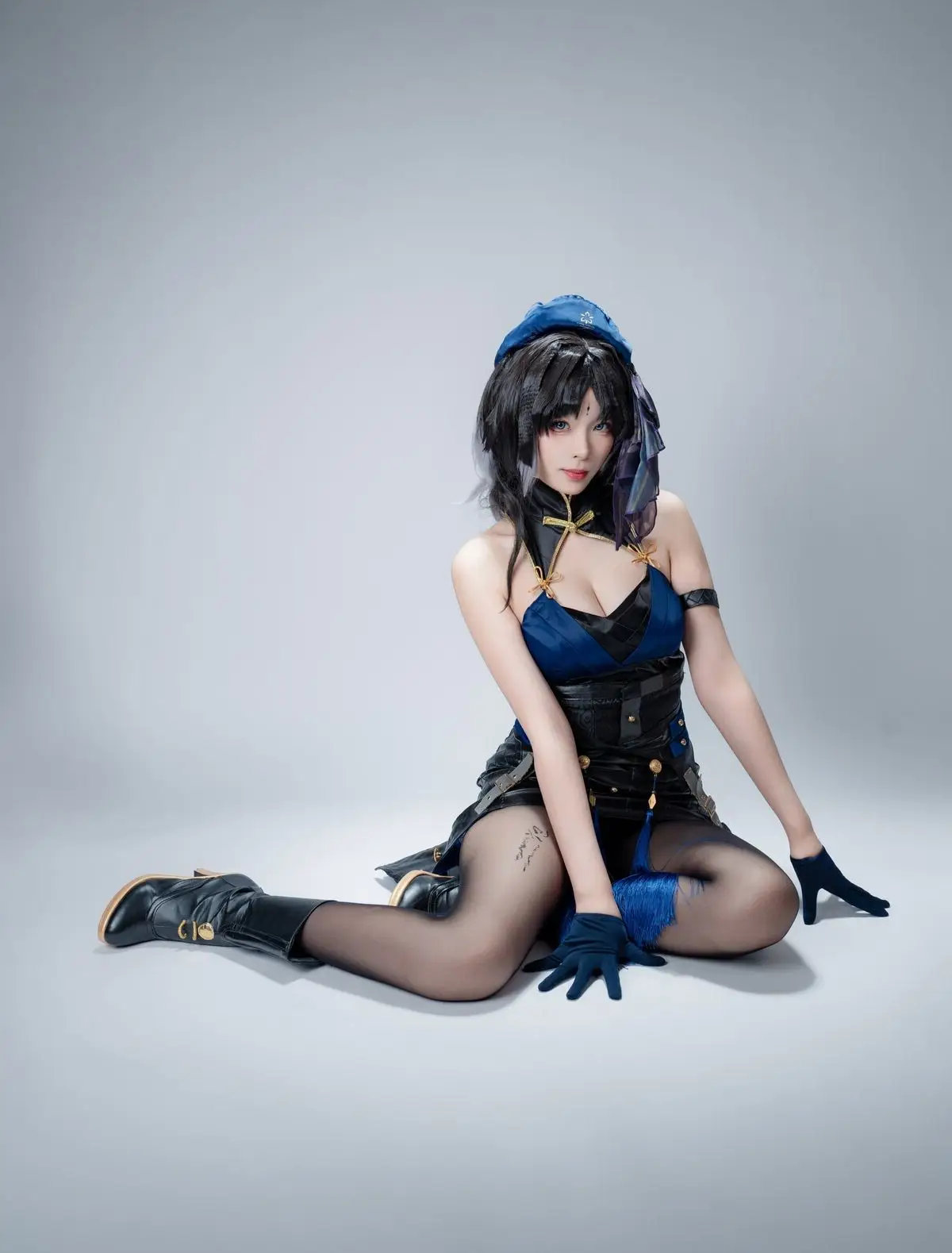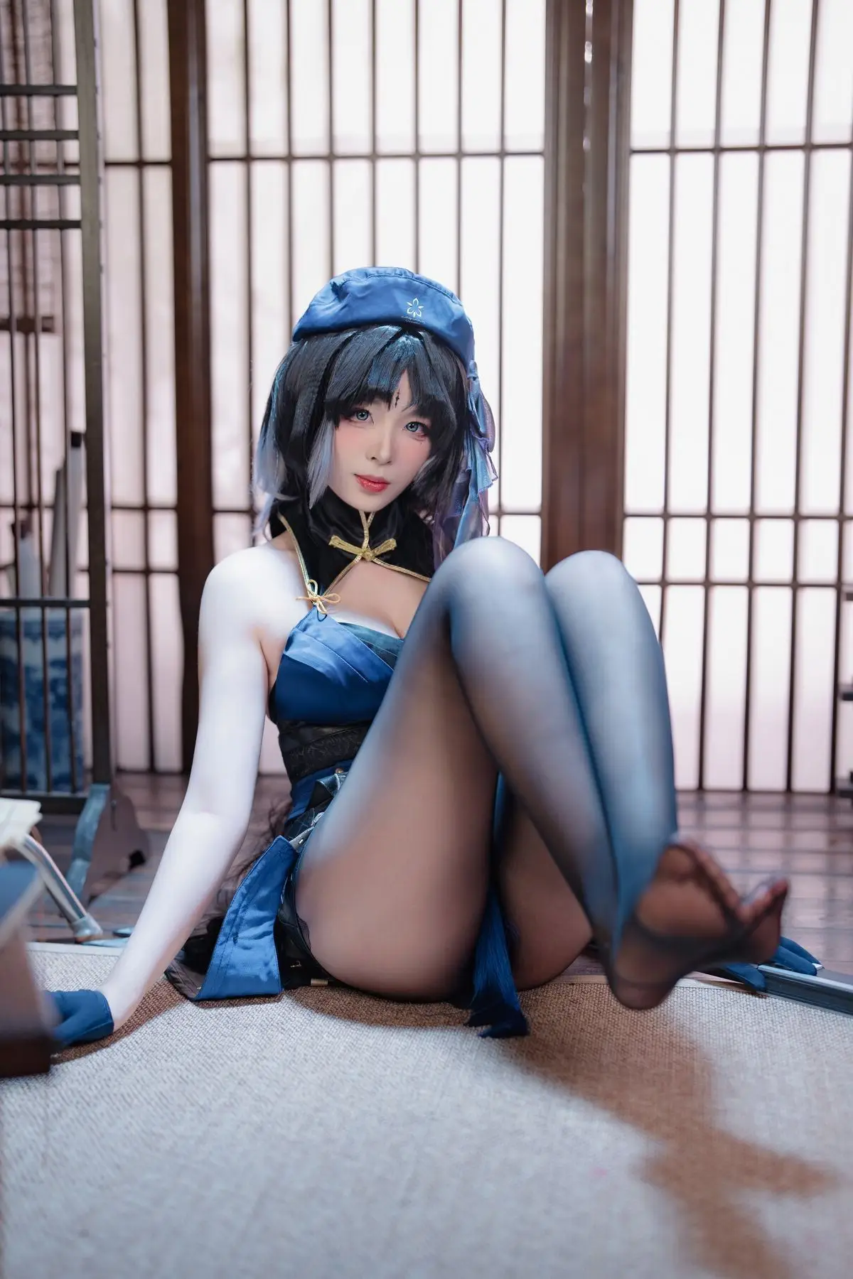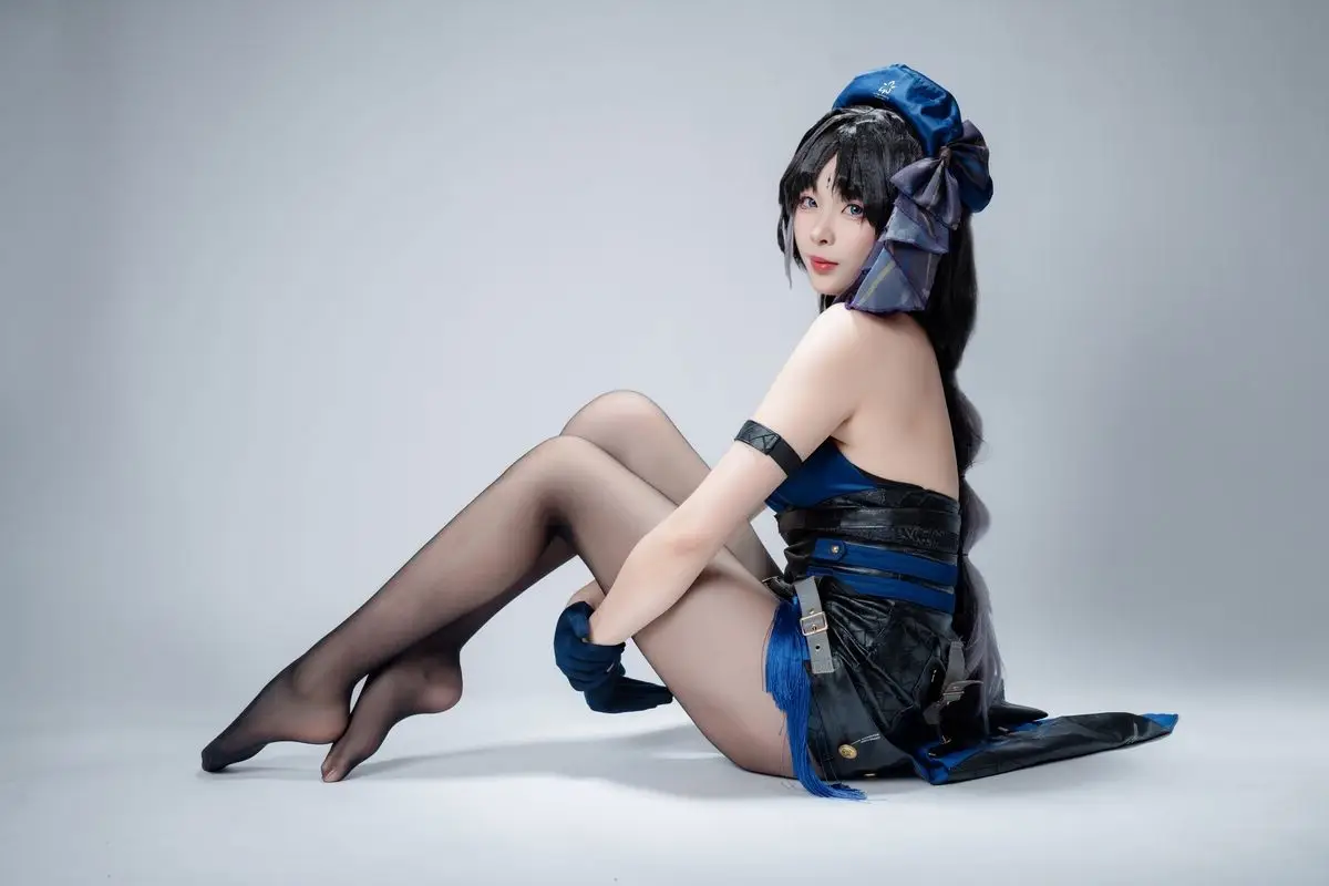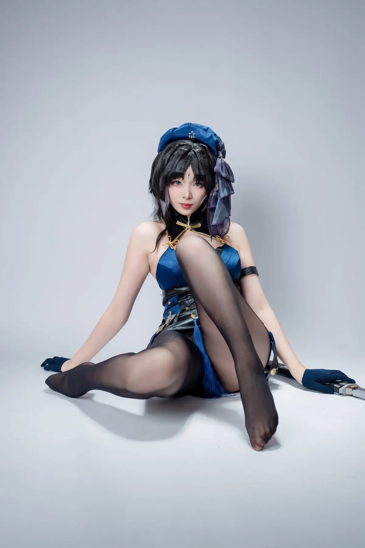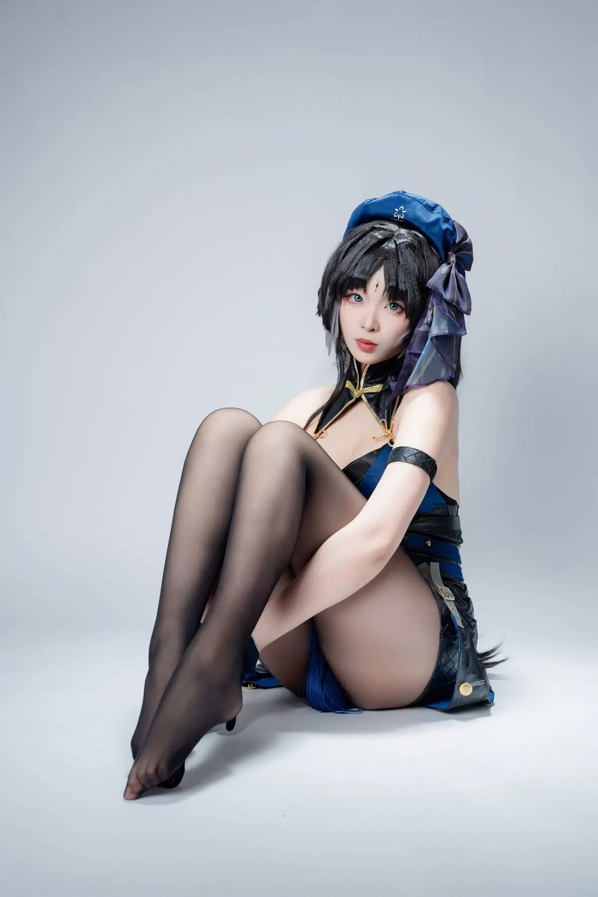 In this captivating series, Coser 轩萧学姐 flawlessly embodies the character 秧秧 Part02, presenting a truly mesmerizing visual. Dressed in a sophisticated dark blue and black costume with intricate details, 轩萧学姐 showcases her dedication and grace. Her elegant seated pose, combined with a captivating gaze, creates an aura that is both mysterious and refined. The meticulous styling from the elaborate headpiece to the delicate sheer stockings perfectly complements the character's aesthetic highlighting the cosplayer's figure and expressive presence. This collection stands as a testament to the cosplayer's artistry and passion offering viewers an impressive and emotionally resonant experience of the cosplay world.#Coser #XuanXiao #XueJie #YangYang #Cosplay #CosplayArt #CostumePlay #AnimeCosplay
