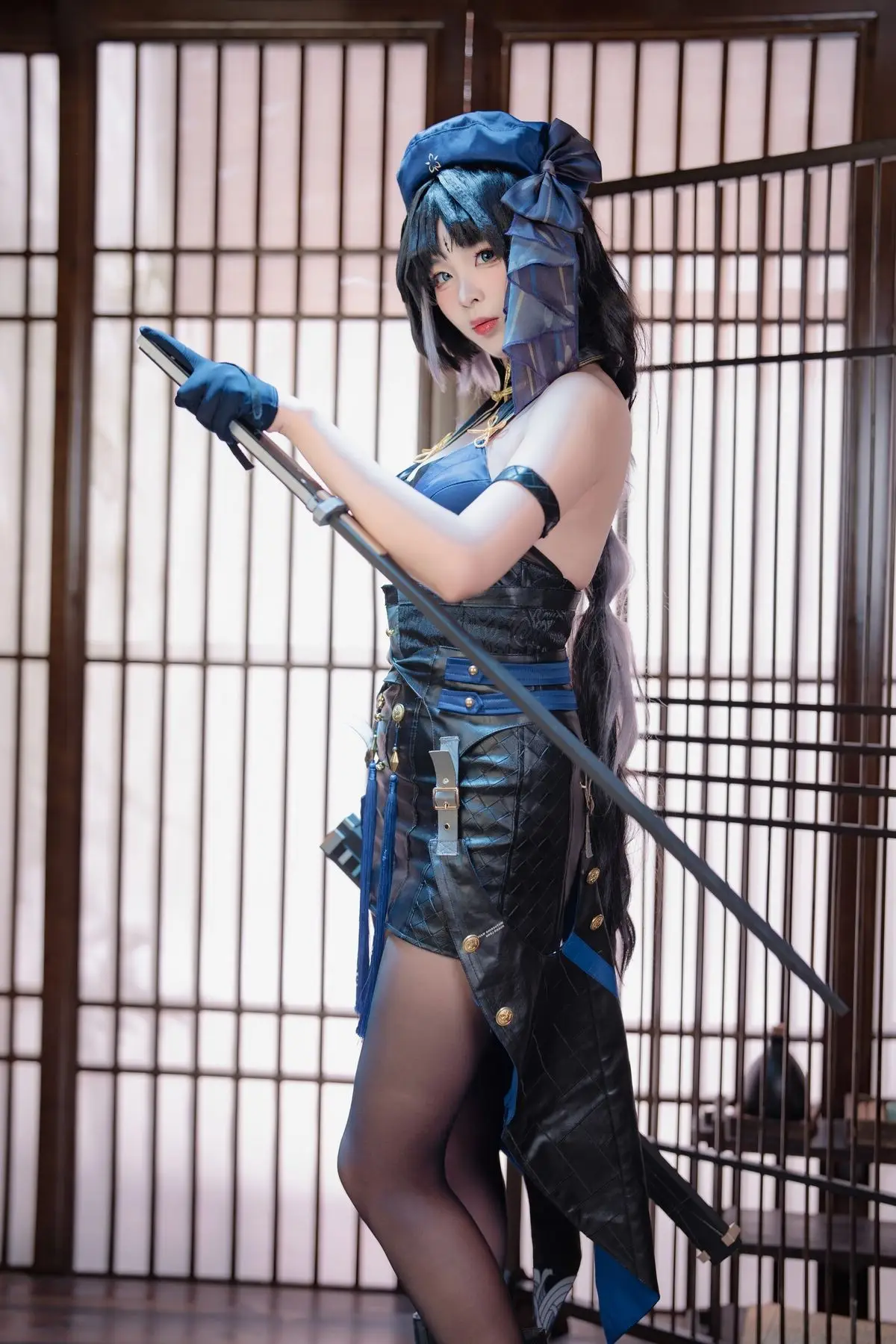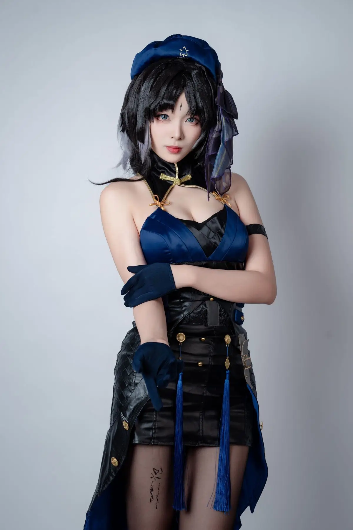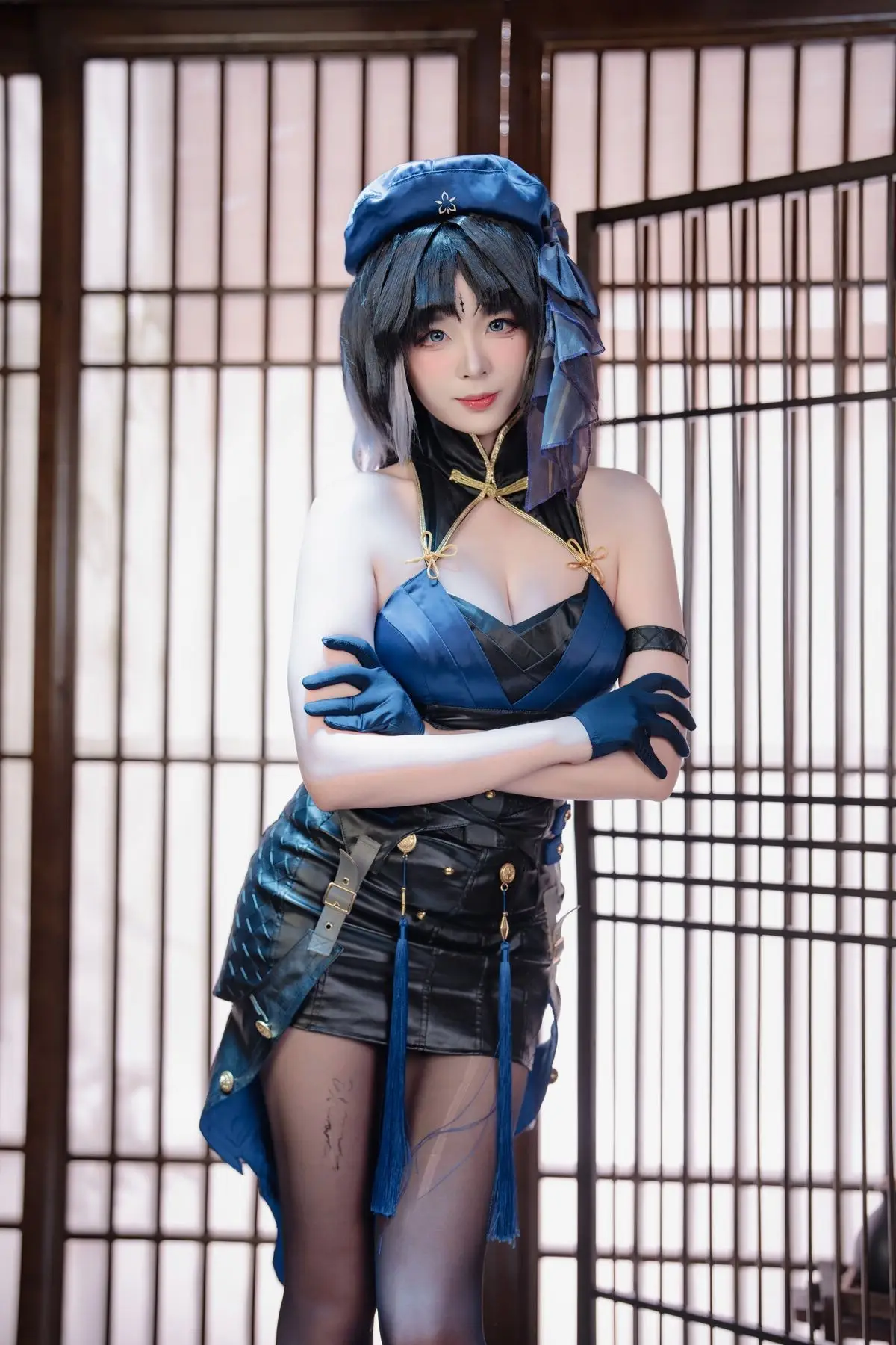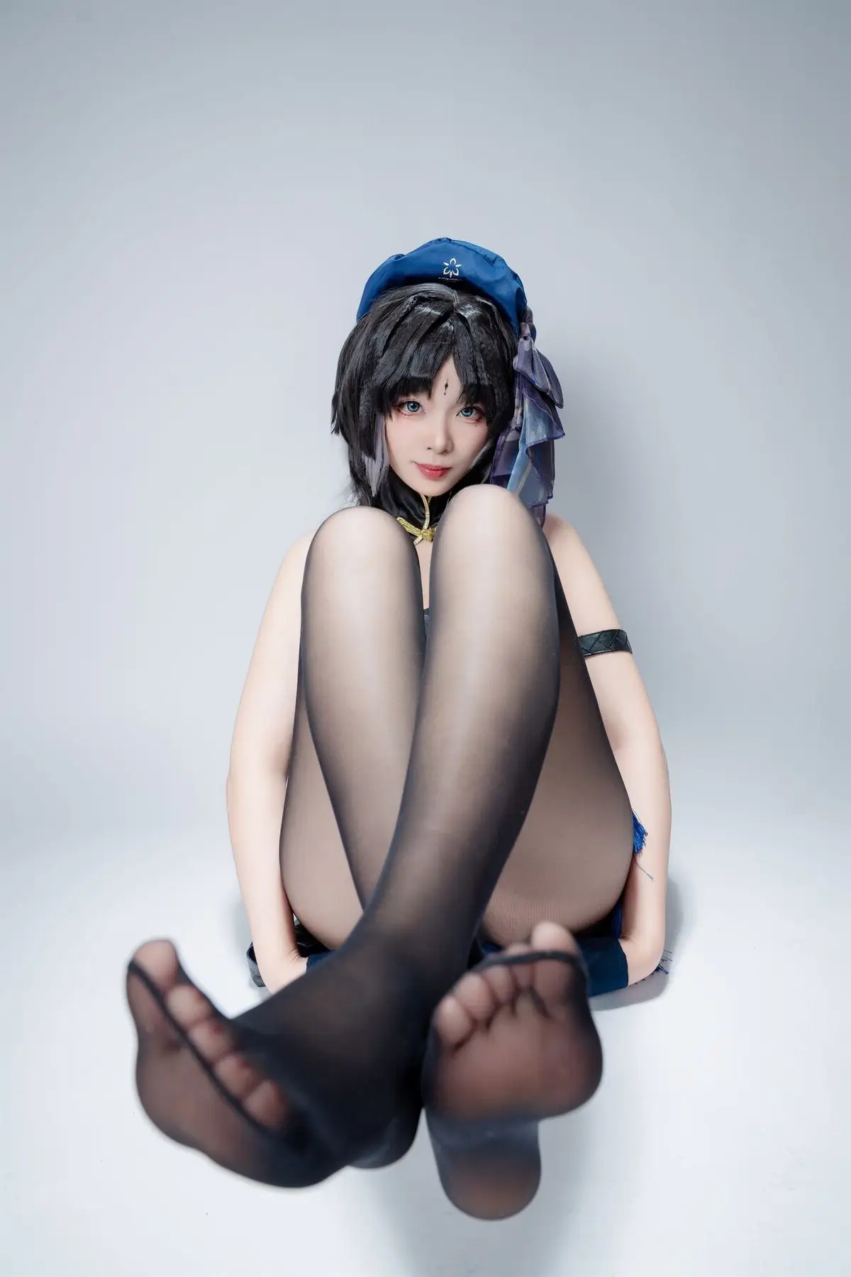 In this captivating series, Coser 轩萧学姐 flawlessly embodies the character 秧秧 Part02, presenting a truly mesmerizing visual. Dressed in a sophisticated dark blue and black costume with intricate details, 轩萧学姐 showcases her dedication and grace. Her elegant seated pose, combined with a captivating gaze, creates an aura that is both mysterious and refined. The meticulous styling from the elaborate headpiece to the delicate sheer stockings perfectly complements the character's aesthetic highlighting the cosplayer's figure and expressive presence. This collection stands as a testament to the cosplayer's artistry and passion offering viewers an impressive and emotionally resonant experience of the cosplay world.#Coser #XuanXiao #XueJie #YangYang #Cosplay #CosplayArt #CostumePlay #AnimeCosplay