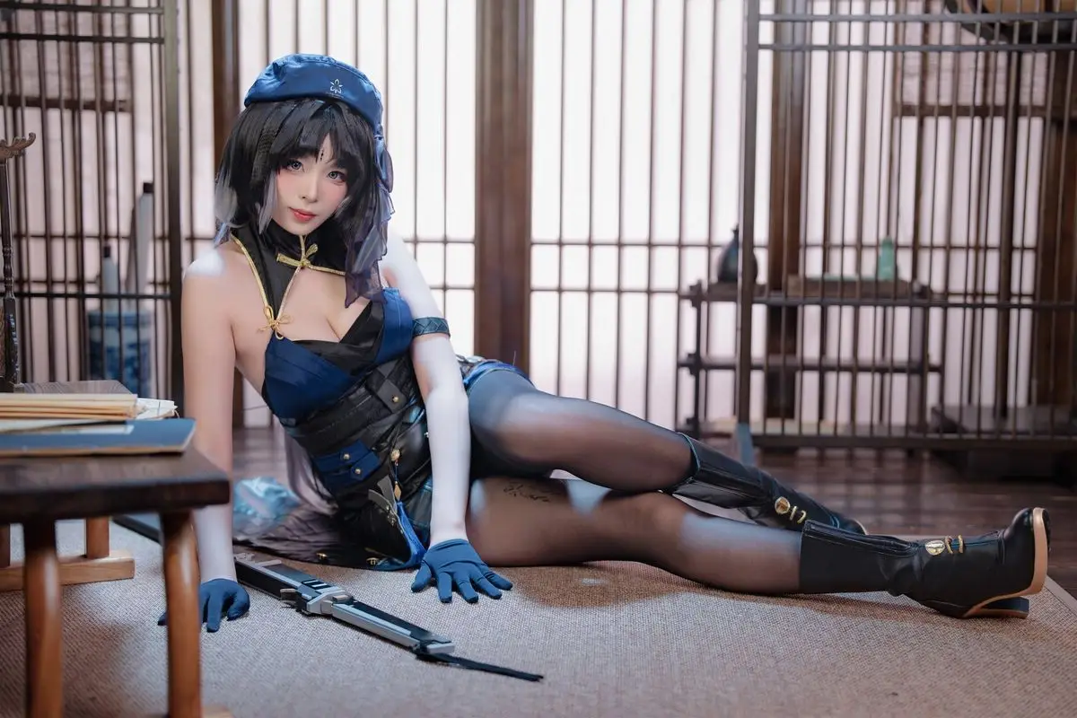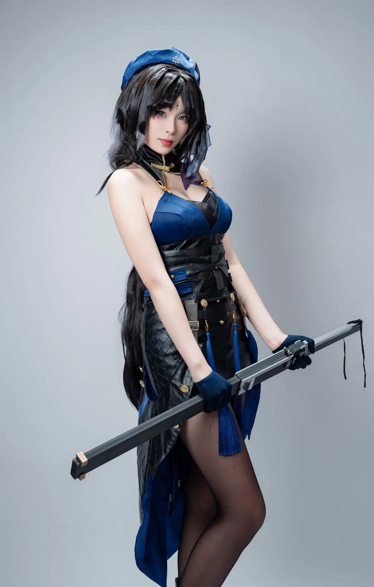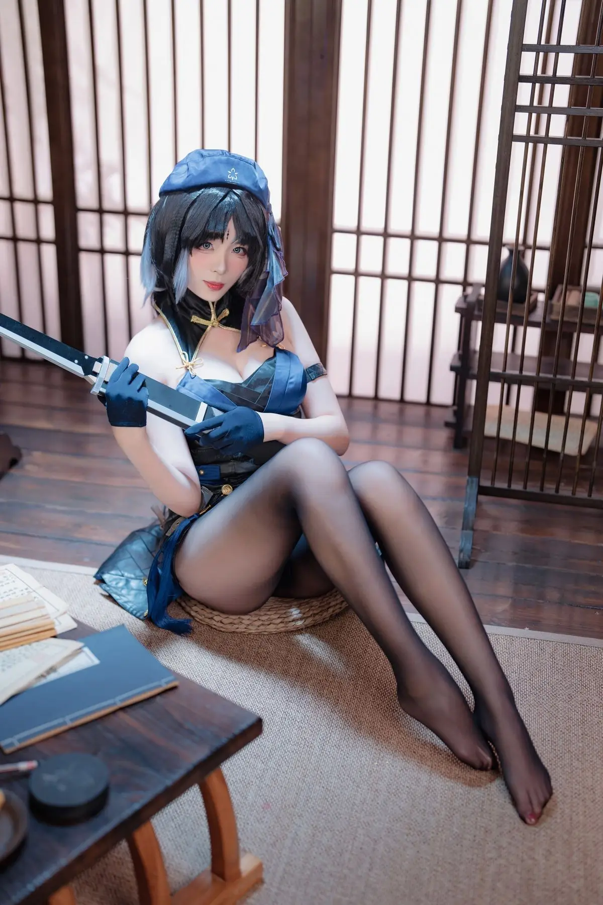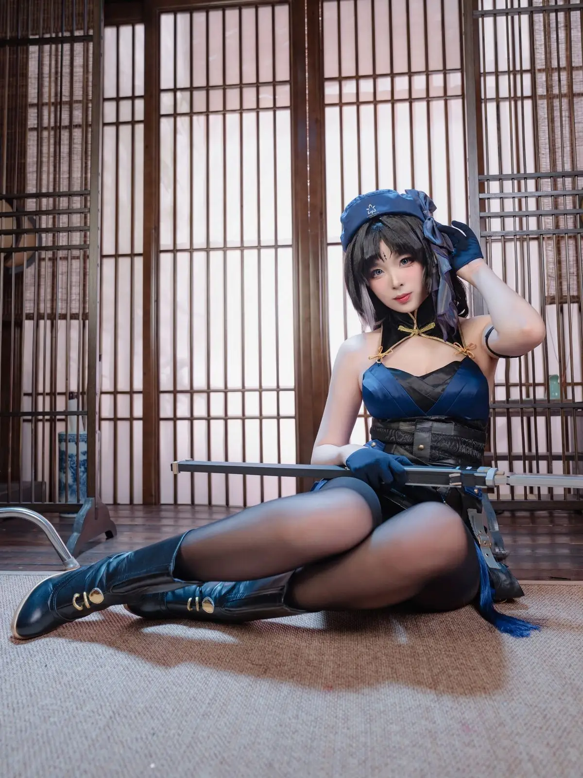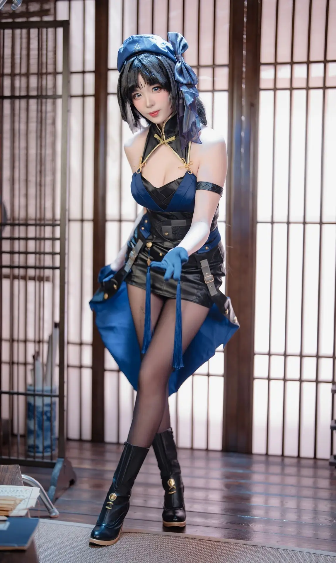 In this captivating series, Coser 轩萧学姐 flawlessly embodies the character 秧秧 Part02, presenting a truly mesmerizing visual. Dressed in a sophisticated dark blue and black costume with intricate details, 轩萧学姐 showcases her dedication and grace. Her elegant seated pose, combined with a captivating gaze, creates an aura that is both mysterious and refined. The meticulous styling from the elaborate headpiece to the delicate sheer stockings perfectly complements the character's aesthetic highlighting the cosplayer's figure and expressive presence. This collection stands as a testament to the cosplayer's artistry and passion offering viewers an impressive and emotionally resonant experience of the cosplay world.#Coser #XuanXiao #XueJie #YangYang #Cosplay #CosplayArt #CostumePlay #AnimeCosplay