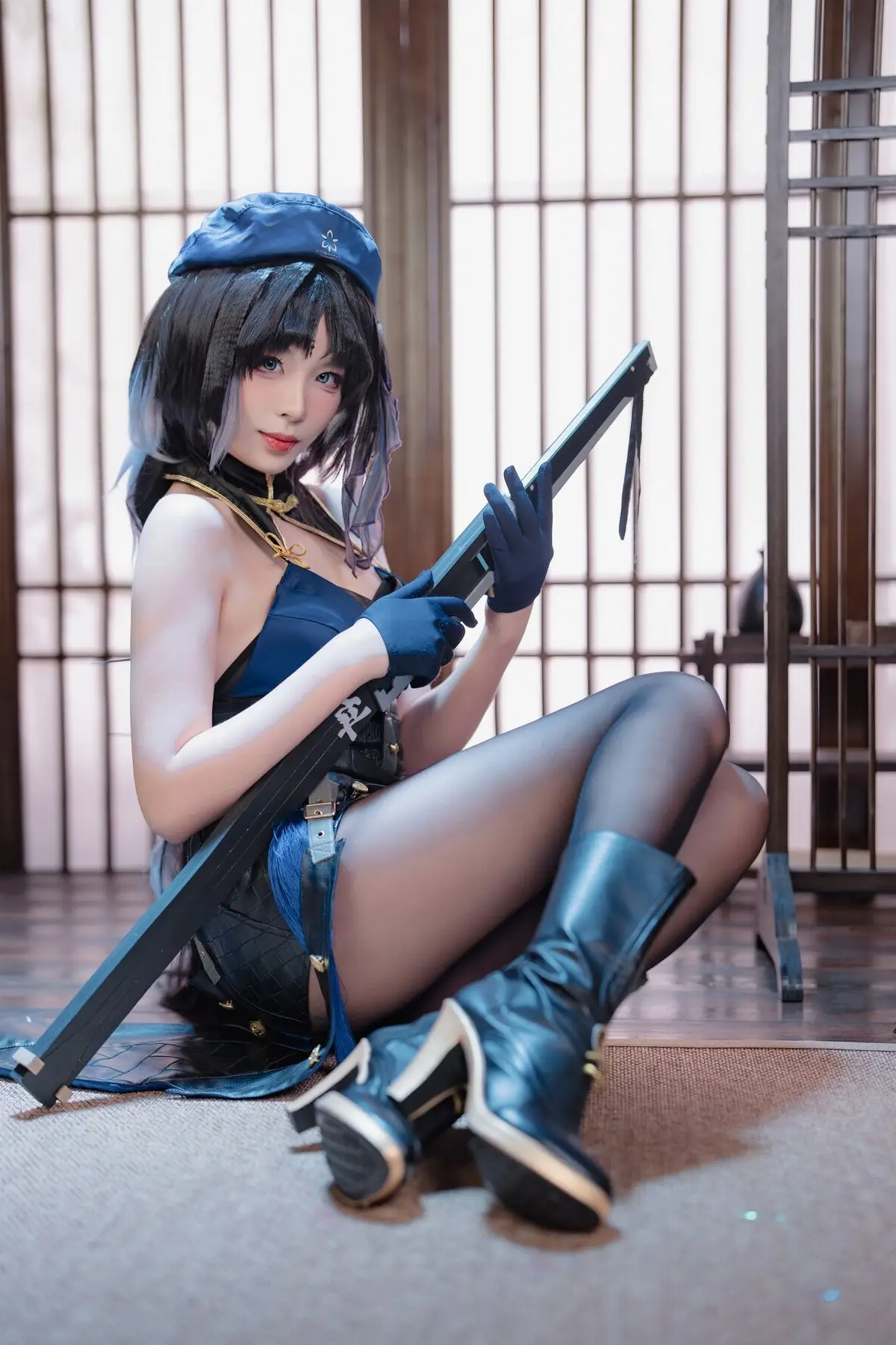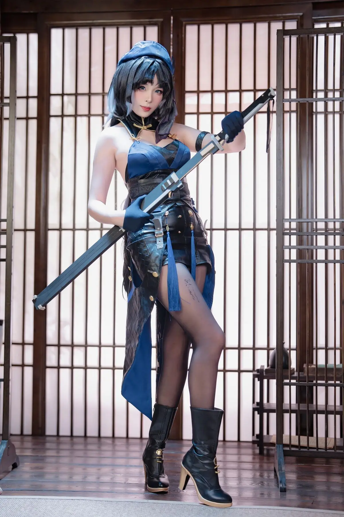 This stunning image showcases cosplayer Xuan Xiao Xue Jie embodying the character Yang Yang with captivating grace. Adorned in a striking dark blue costume complemented by alluring black stockings Xuan Xiao Xue Jie exudes the characters mysterious and powerful essence. Her confident gaze and elegant pose holding a distinctive weapon perfectly capture the spirit of a female warrior. The traditional Asian setting provides a serene yet intriguing backdrop enhancing the overall visual appeal. This piece is part of Xuan Xiao Xue Jies impressive cosplay collection demonstrating her meticulous attention to detail and dedication to the role. Viewers will undoubtedly be drawn to the harmonious blend of modern aesthetics and traditional ambiance.#Cosplay #XuanXiao #XueJie #YangYang #WarriorGirl #ElegantCosplay