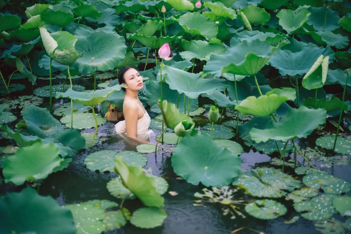 In the YiTuYu Vol.8733 Ju Zi photo collection, model Ju Zi emerges like a muse amidst a lush lotus pond. Dressed in a pristine white gown, she gently bends down to cherish a budding pink lotus flower. Every detail, from her tender gaze to the vibrant green lotus leaves, blends harmoniously to create a poetic and tranquil scene. Ju Zi's pure beauty, coupled with the pristine elegance of the lotus, evokes a sense of a clear and peaceful summer. This collection is not just a series of photos but a celebration of natural beauty and a captivating moment of serenity.#JuZi #LotusFlower #WhiteDress #EtherealBeauty #YiTuYu