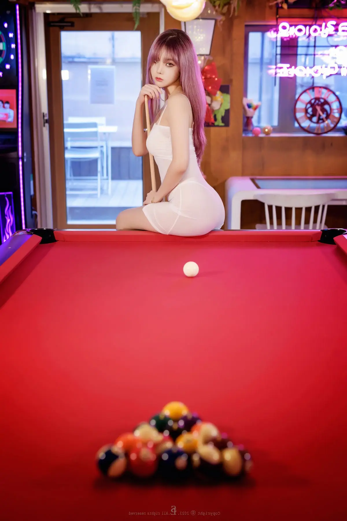 Immerse yourself in the captivating world of Yuna (유나) with her mesmerizing Vol.52 See-through Part 2 photoshoot. Each frame beautifully captures the seductive charm and alluring aura of this talented model. Featuring vibrant dyed hair and a form-fitting white dress, Yuna poses artfully by a pool table, her gaze magnetic and curves impeccably highlighted. This collection not only celebrates Yuna's confidence and unique style but also ignites imagination, offering a visually stunning experience. It's an emotionally rich photographic work, showcasing exquisite detail in every angle and lighting choice, sure to delight fans of modern East Asian beauty and bold See-through fashion.#Yuna #Model #SeeThroughStyle #AsianBeauty #WhiteDress #GlamourPhotography