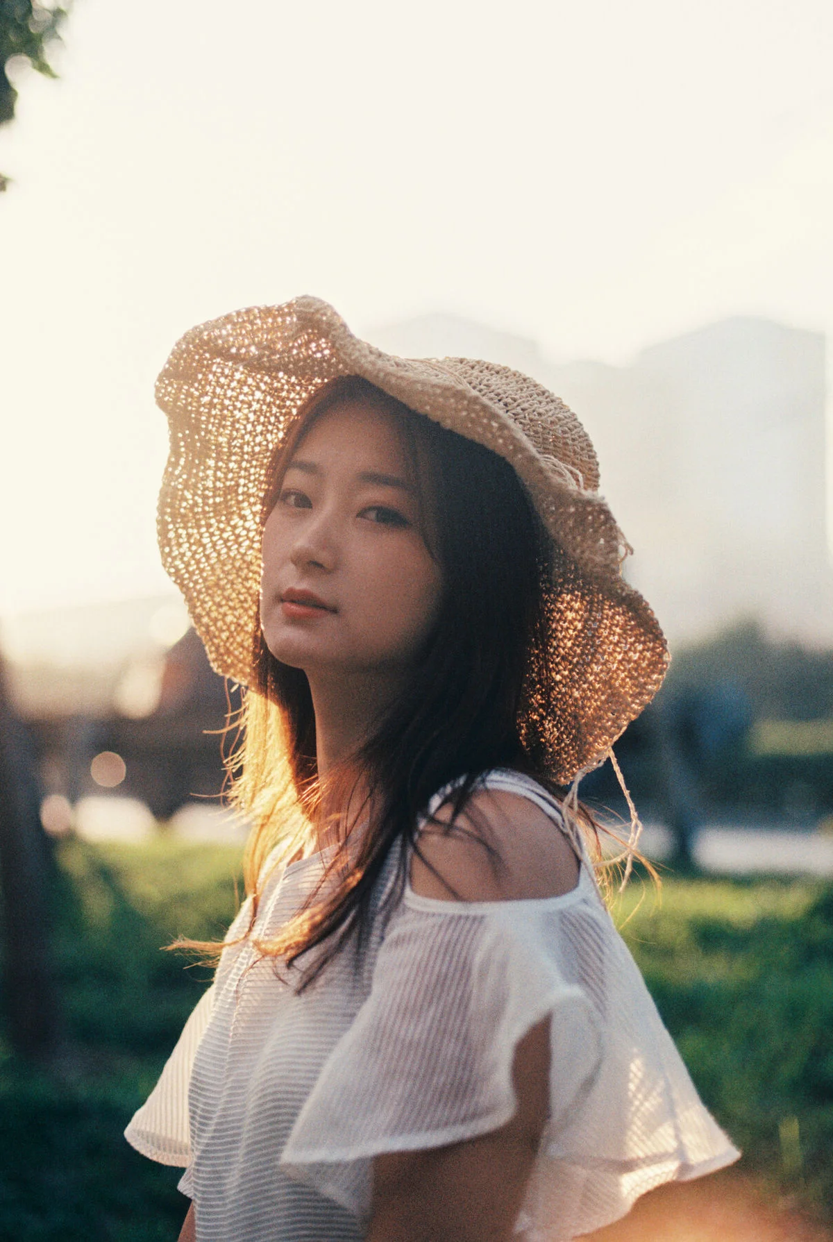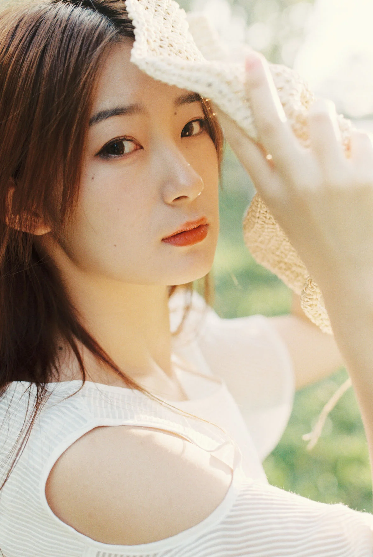 This stunning photograph captures Xiao Ming in a serene moment amidst lush nature. The brilliant summer sunlight shining from behind creates a magical backlight effect accentuating her soft features and radiant hair. Dressed in a pristine white dress Xiao Ming exudes pure and gentle beauty resembling a muse gracefully wandering through a meadow. Her gesture of shielding her eyes from the sun not only shows genuine interaction with the environment but also adds a charming allure. This is part of the YiTuYu Vol.8801 collection where photographic art perfectly blends with natural beauty to create truly emotive works.#XiaoMing #YiTuYu #NatureMuse #BacklightBeauty #WhiteDress