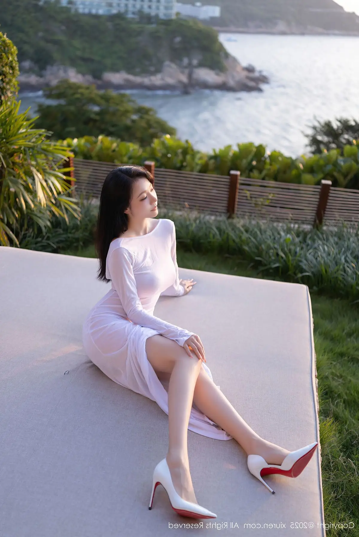 An Ran's Elegant White Dress XiuRen No.10747 Captivating Serenity in Natural Light.