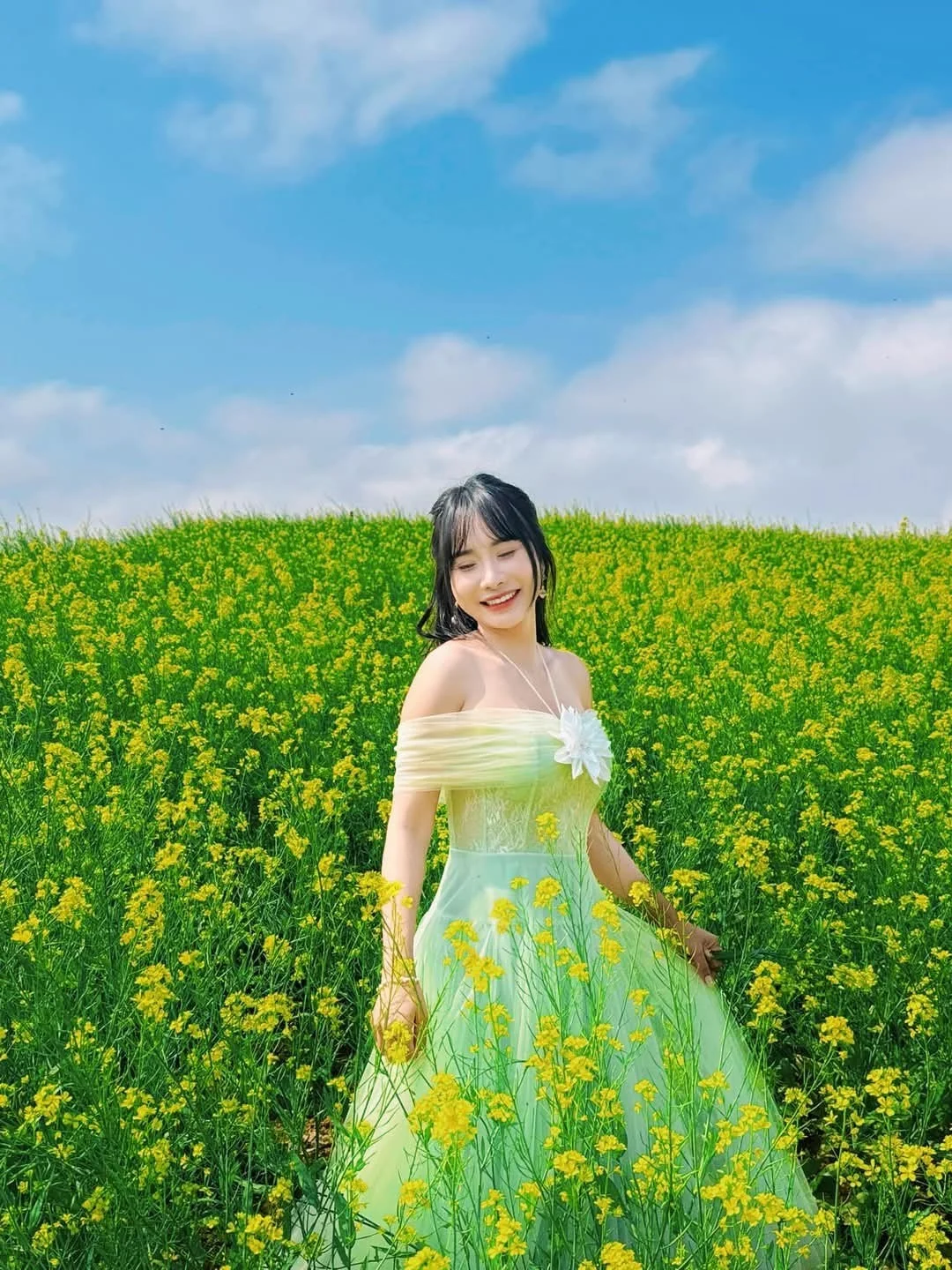 As the first cold winds of winter gently brush across the Moc Chau plateau, the entire landscape awakens with the vibrant yellow hues of mustard flower fields stretching to the horizon. Standing amidst the vast valley, the girl in her vintage-inspired outfit, featuring a blue chambray shirt and a charming straw hat, looks like a graceful stroke of paint on nature's canvas. Her distant gaze and relaxed body language exude a sense of profound peace, perfectly blending with the slow pace of life in the highlands. The artistic contrast between the cool blue tones of her attire and the warm golden yellow of the flowers evokes a romantic Cottagecore aesthetic that is both timeless and free. Moc Chau during this season is more than just a travel destination; it is an emotional journey where the soul is soothed by the fresh mountain air and the rustic beauty of the flora. This is the perfect time to leave the city worries behind, put on your favorite outfit, and immerse yourself in the most enchanting flower season of Northern Vietnam.#MocChauWanderlust #GoldenMustardFields #CottagecoreAesthetic #VietnamTravel #EarlyWinterVibes