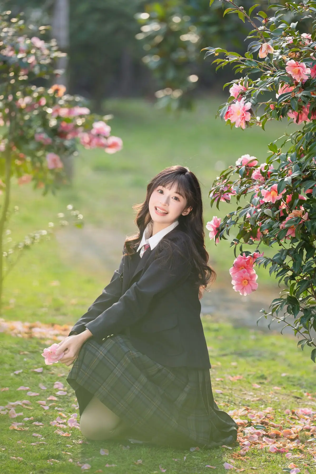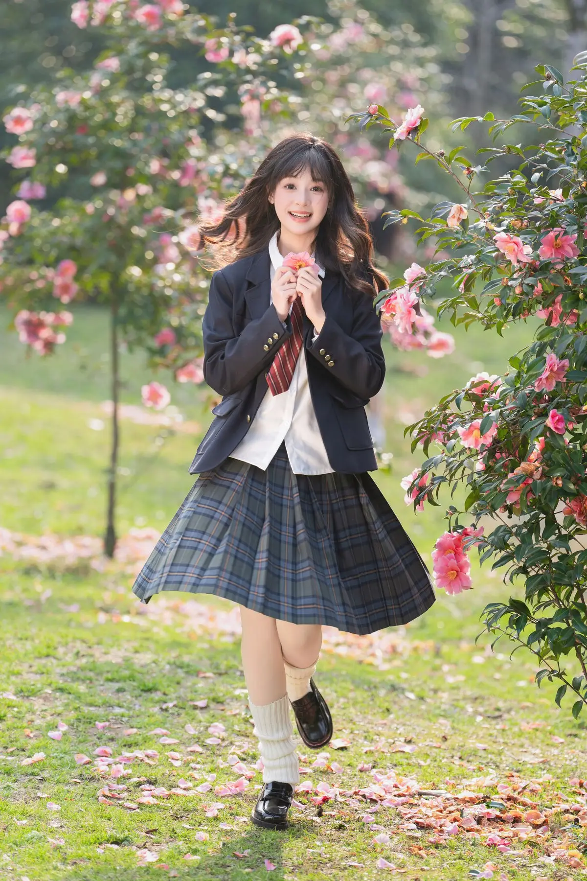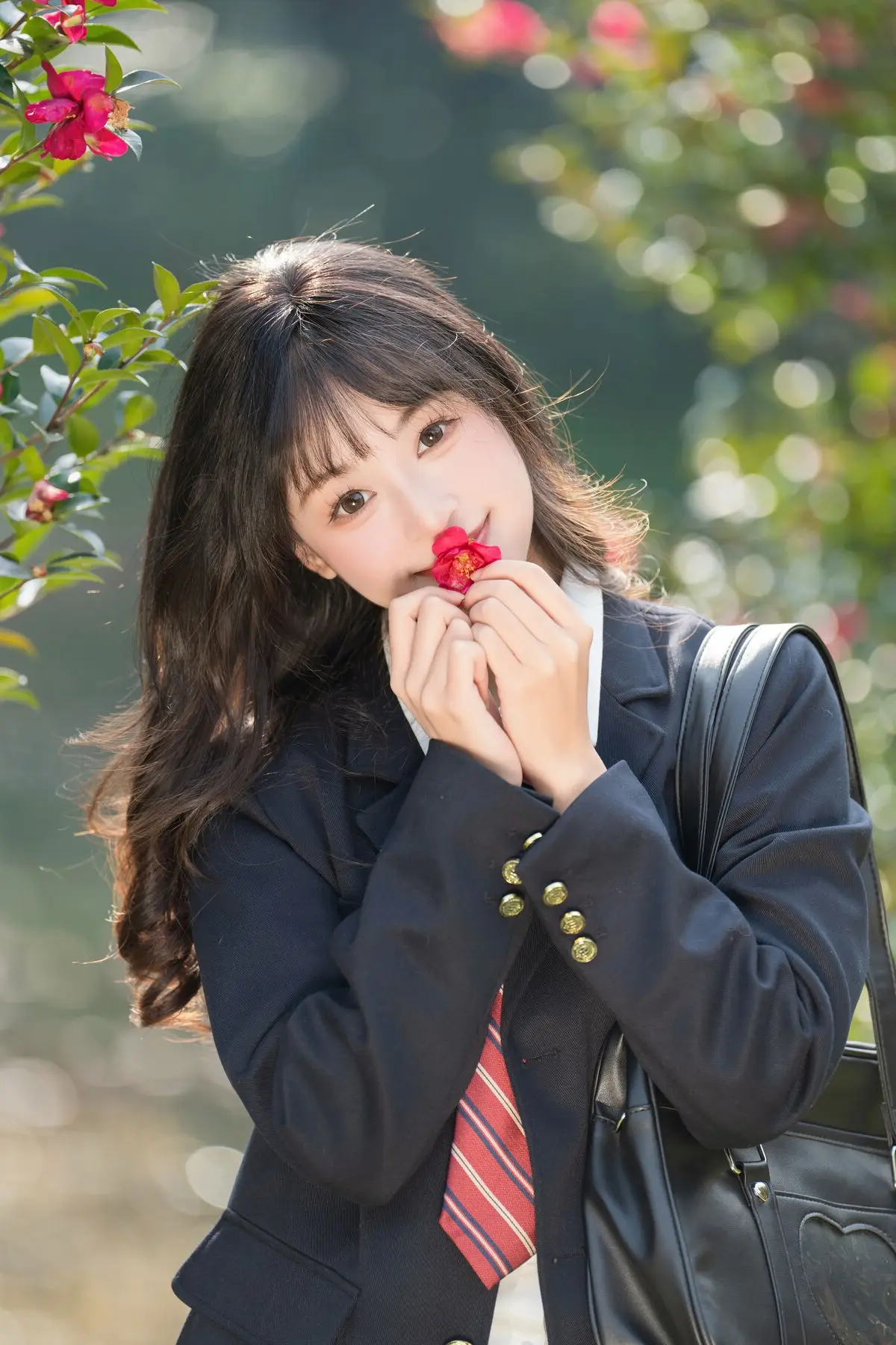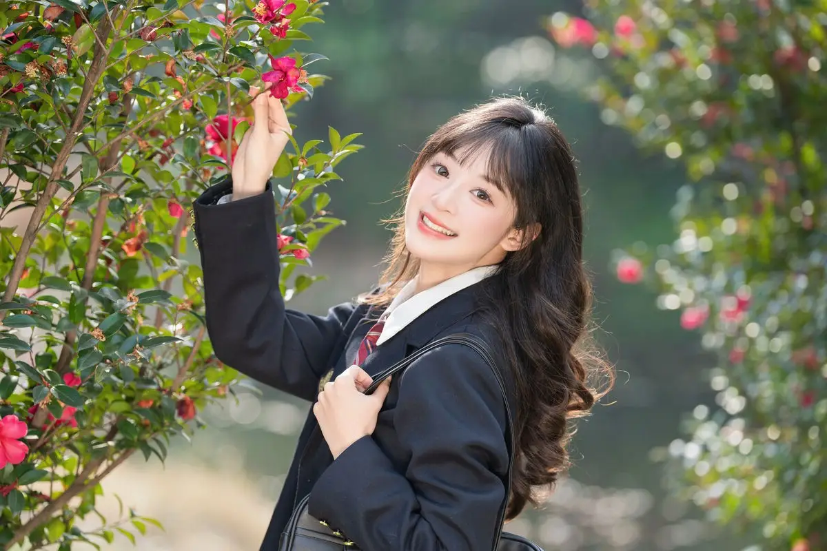 This visual masterpiece captures a moment of pure ethereal beauty as Xia Yu Xiao Nian wanders into a hidden floral sanctuary. Dressed in a classic navy blue JK uniform featuring crisp white stripes and a bold red ribbon, the styling perfectly blends nostalgic schoolgirl innocence with a sophisticated artistic flair. The way she lies amidst the blooming petals, holding a single blossom close to her face, evokes a sense of intimacy and quiet wonder that resonates deeply with the viewer. The lighting is soft and warm, with dappled sunlight dancing across the scene to create a cinematic mood that feels both timeless and fleeting. Her gentle expression and relaxed body language tell a story of a peaceful escape from the modern world, leaning into a minimalist yet emotionally resonant aesthetic. It is a stunning display of visual storytelling where fashion meets the raw beauty of nature, inviting the viewer to lose themselves in this serene and poetic atmosphere. Every detail, from the texture of the fabric to the vibrant colors of the flowers, contributes to a vibe of pure artistic inspiration.#JStyleFashion #SecretGardenVibe #CinematicPhotography #AestheticPortrait #XiaYuXiaoNian #JK #JKUniform
