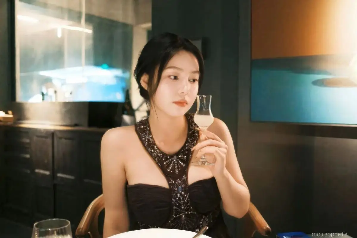 In this captivating image Sha Le Mei Xiao Cang Lao Shi embodies an exquisite blend of elegance and allure cementing her status as a captivating internet sensation She graces the frame in a sophisticated black dress meticulously designed to highlight her graceful silhouette and confident demeanor Her deep gaze and delicate hand gesture create an enigmatic charm inviting viewers to delve deeper into her unique style and personality This striking moment perfectly fuses physical beauty with an irresistible aura positioning Sha Le Mei Xiao Cang Lao Shi as the undeniable focal point The photograph not only showcases her refined aesthetic but also vividly portrays her undeniable magnetism