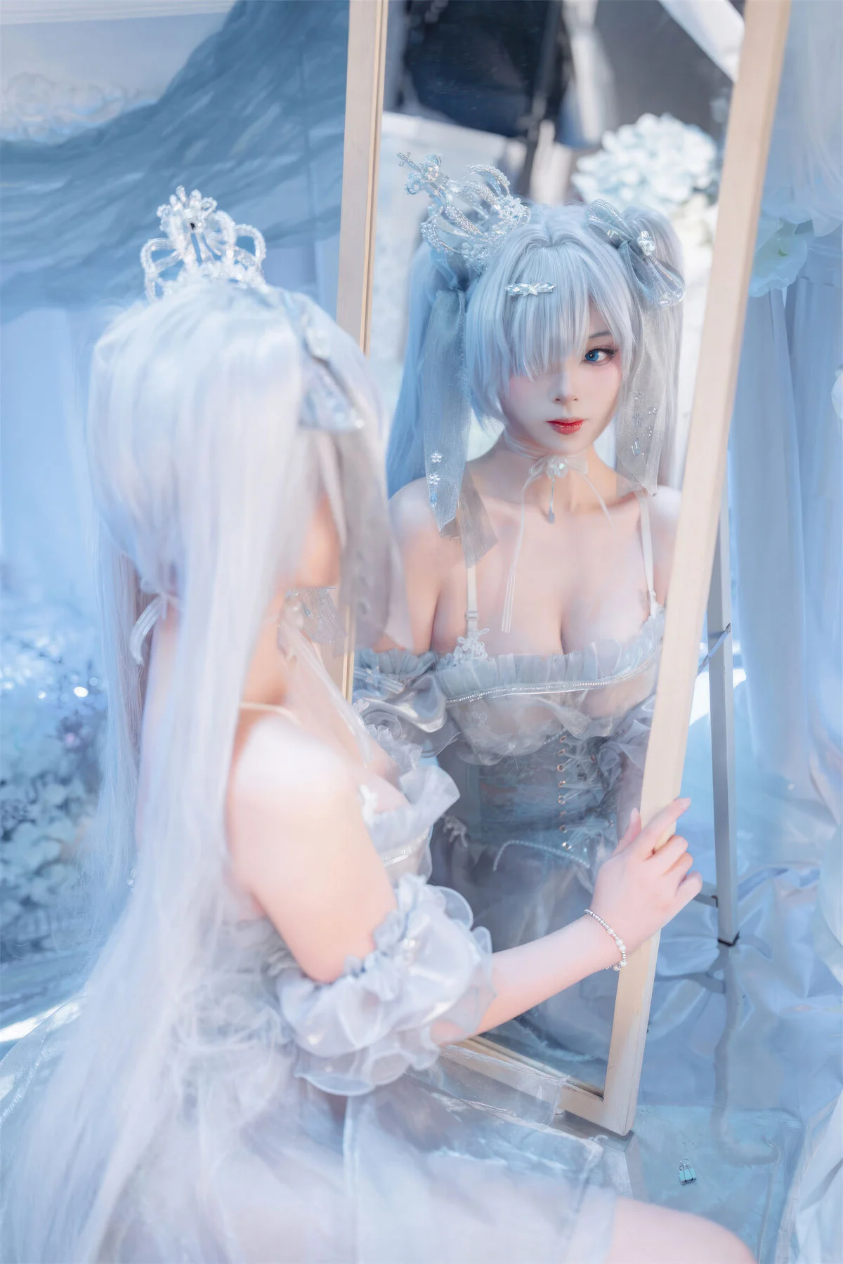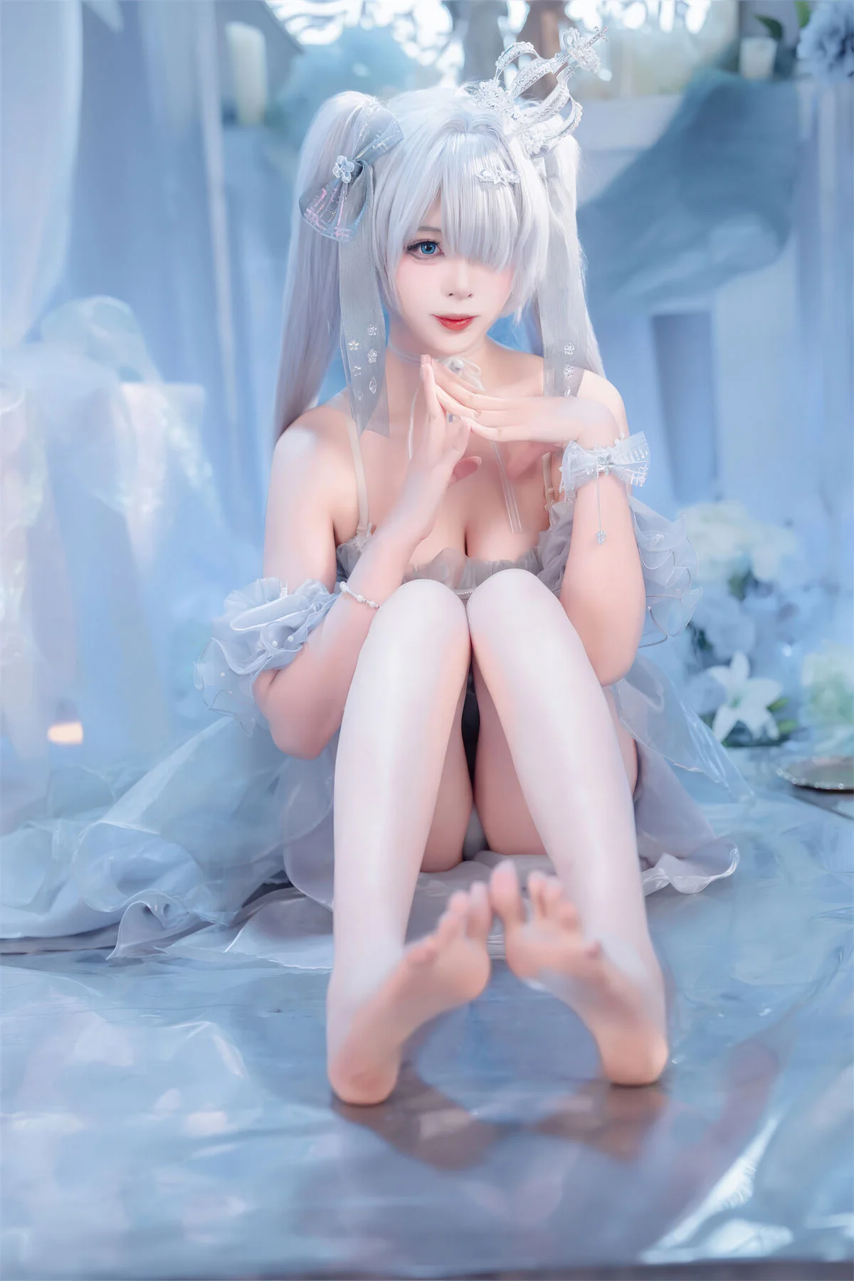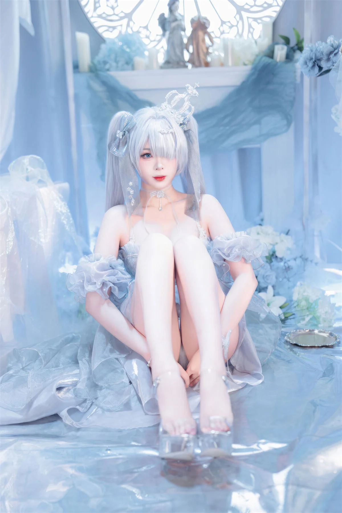 Step into a world of ethereal beauty with this breathtaking cosplay featuring the iconic character Cinderella in her Crystal Princess form from the hit mobile game Goddess of Victory: Nikke. Brought to life by the talented creator Xuan Xiao Xue Jie, this collection captures every shimmering detail of the futuristic yet fairy-tale-inspired aesthetic that fans of the game adore.The photoshoot showcases the intricate craftsmanship of the Crystal Princess outfit, characterized by its translucent blue and silver hues, delicate glass-like accents, and a regal silhouette that commands attention. Xuan Xiao Xue Jie perfectly embodies the mysterious and elegant persona of Cinderella, making this a must-see for any Nikke enthusiast or cosplay photography lover. Whether you are looking for costume inspiration or simply appreciate high-end anime-style art, these images offer a masterclass in lighting and character portrayal.