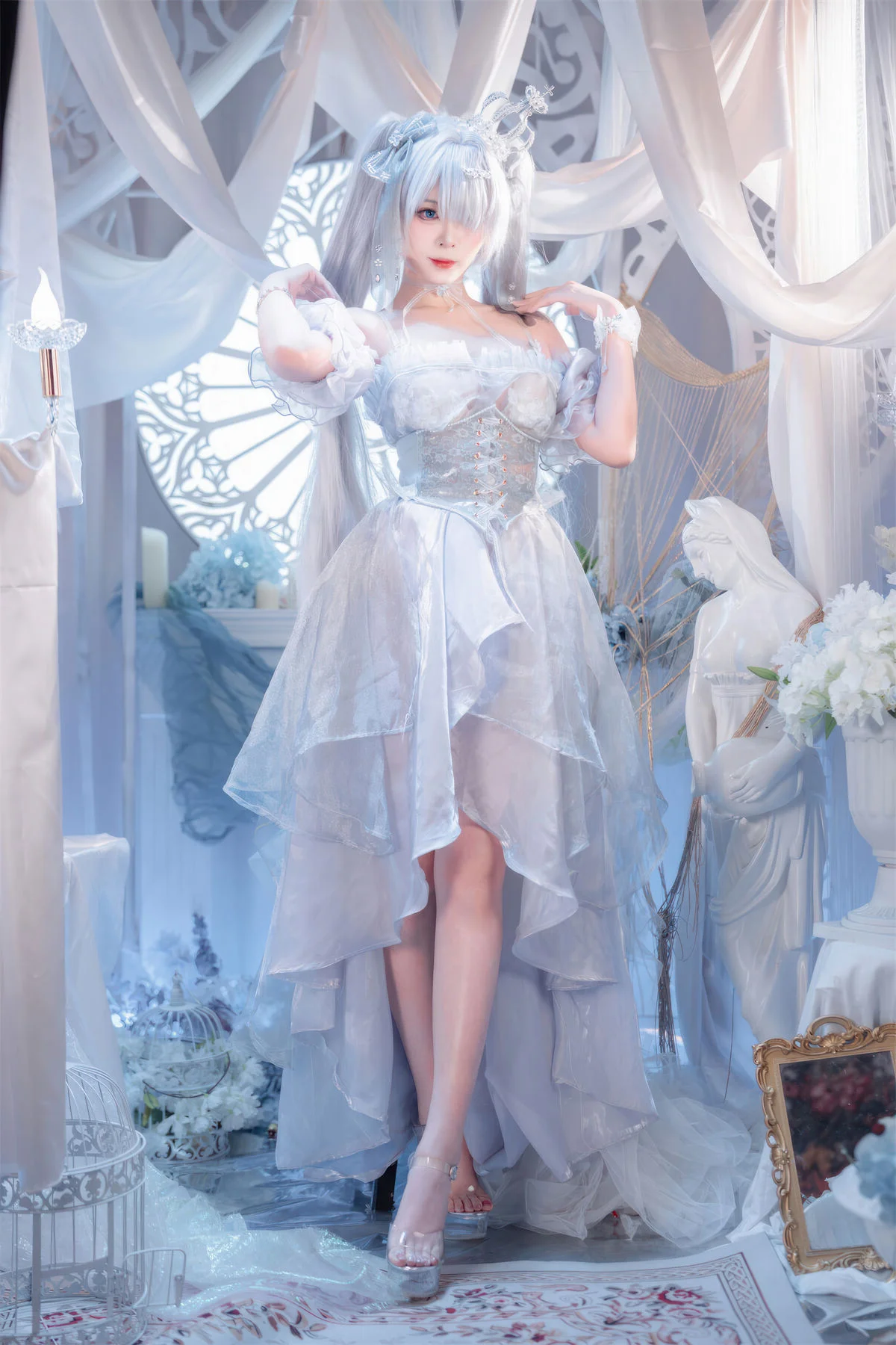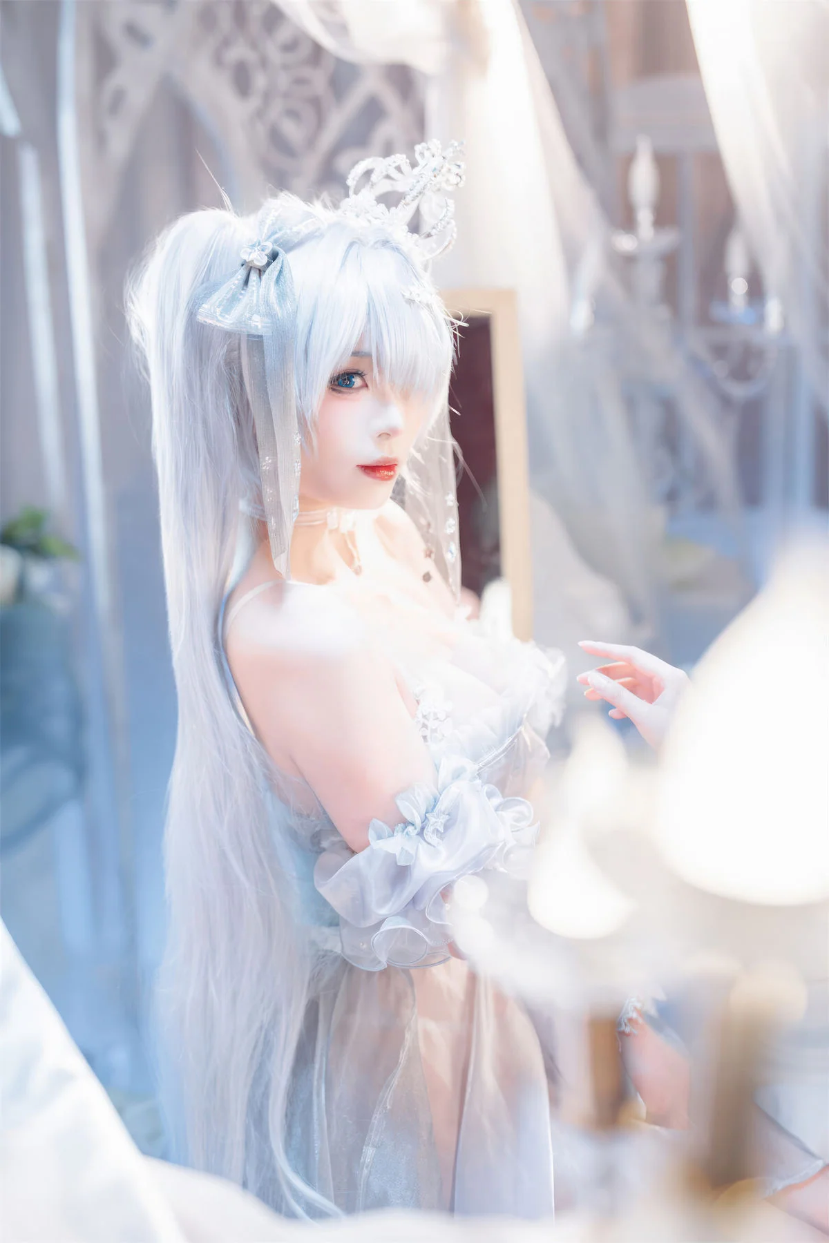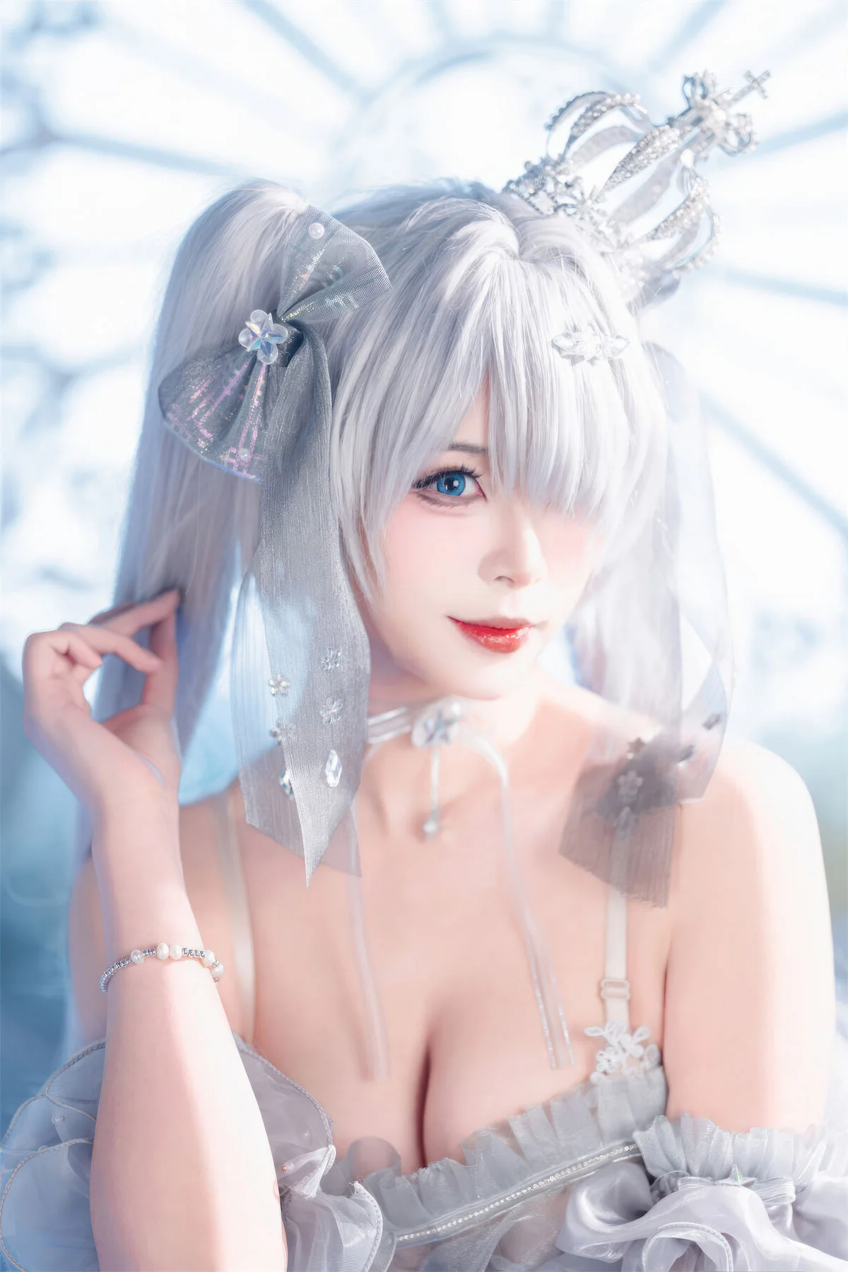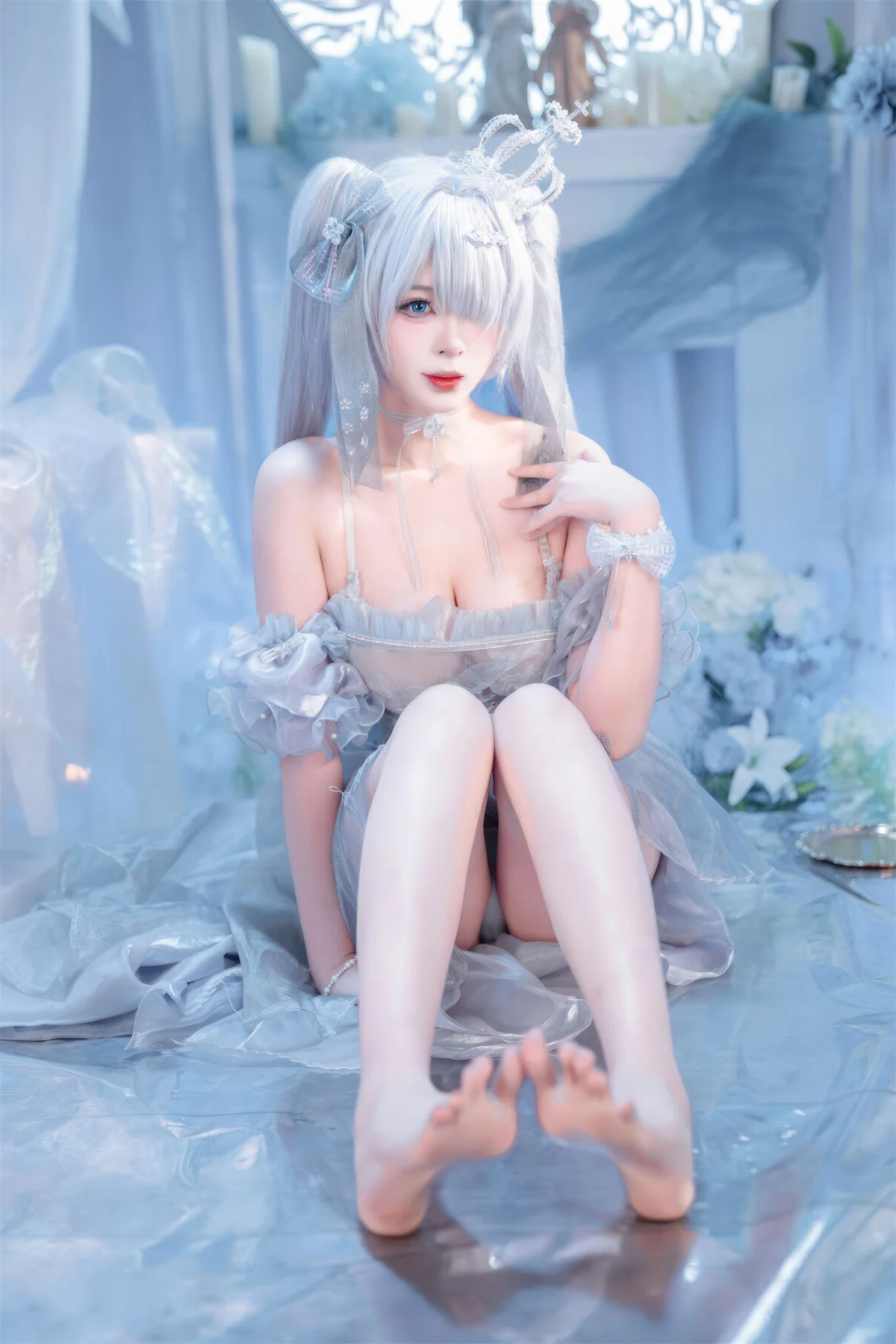 Step into a world of ethereal beauty with this breathtaking cosplay featuring the iconic character Cinderella in her Crystal Princess form from the hit mobile game Goddess of Victory: Nikke. Brought to life by the talented creator Xuan Xiao Xue Jie, this collection captures every shimmering detail of the futuristic yet fairy-tale-inspired aesthetic that fans of the game adore.The photoshoot showcases the intricate craftsmanship of the Crystal Princess outfit, characterized by its translucent blue and silver hues, delicate glass-like accents, and a regal silhouette that commands attention. Xuan Xiao Xue Jie perfectly embodies the mysterious and elegant persona of Cinderella, making this a must-see for any Nikke enthusiast or cosplay photography lover. Whether you are looking for costume inspiration or simply appreciate high-end anime-style art, these images offer a masterclass in lighting and character portrayal.