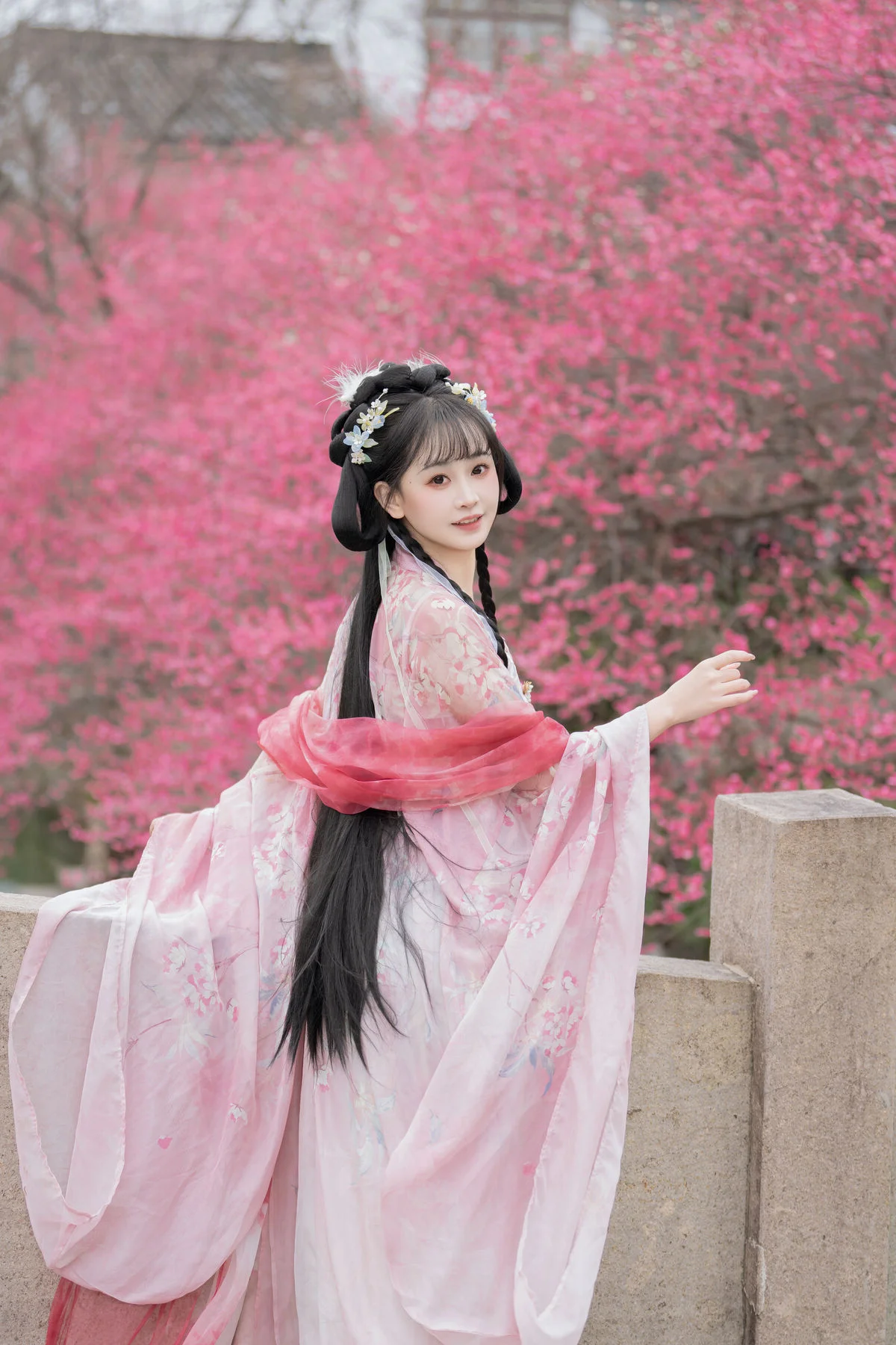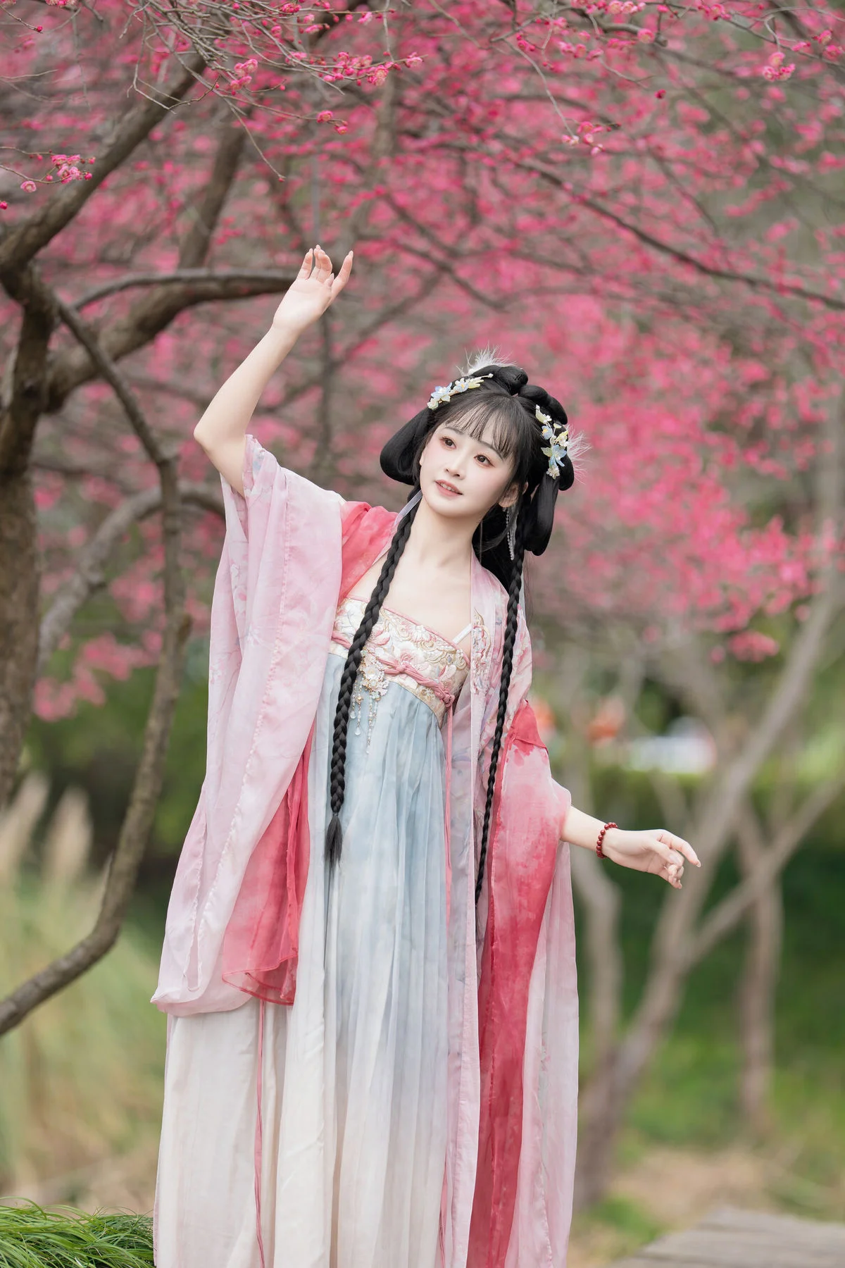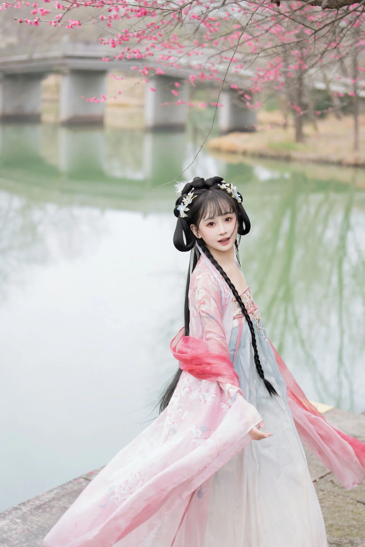 Discover the captivating beauty of Jiao Yi Zhi Sui Sui in the YiTuYu Vol.8759 collection. The enchanting model, adorned in a delicate pink and white Hanfu, gracefully poses amidst a breathtaking display of blooming plum blossoms. Her serene expression and elegant posture evoke a sense of timeless charm, perfectly harmonizing with the tranquil waterscape and lush natural backdrop. This collection beautifully captures the essence of traditional Asian aesthetics and the vibrant spirit of spring, inviting viewers into a world of poetic grace and cultural artistry.
