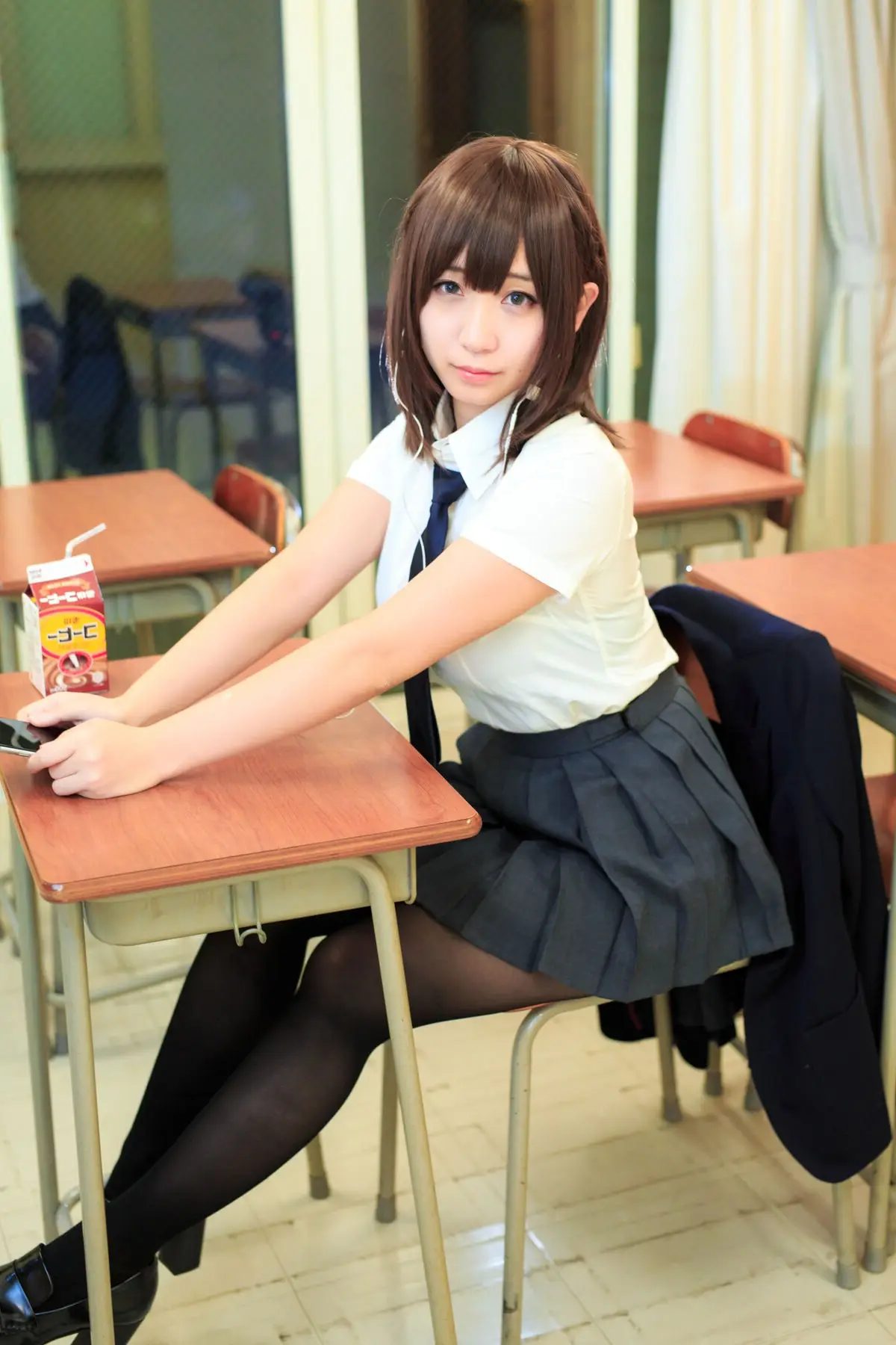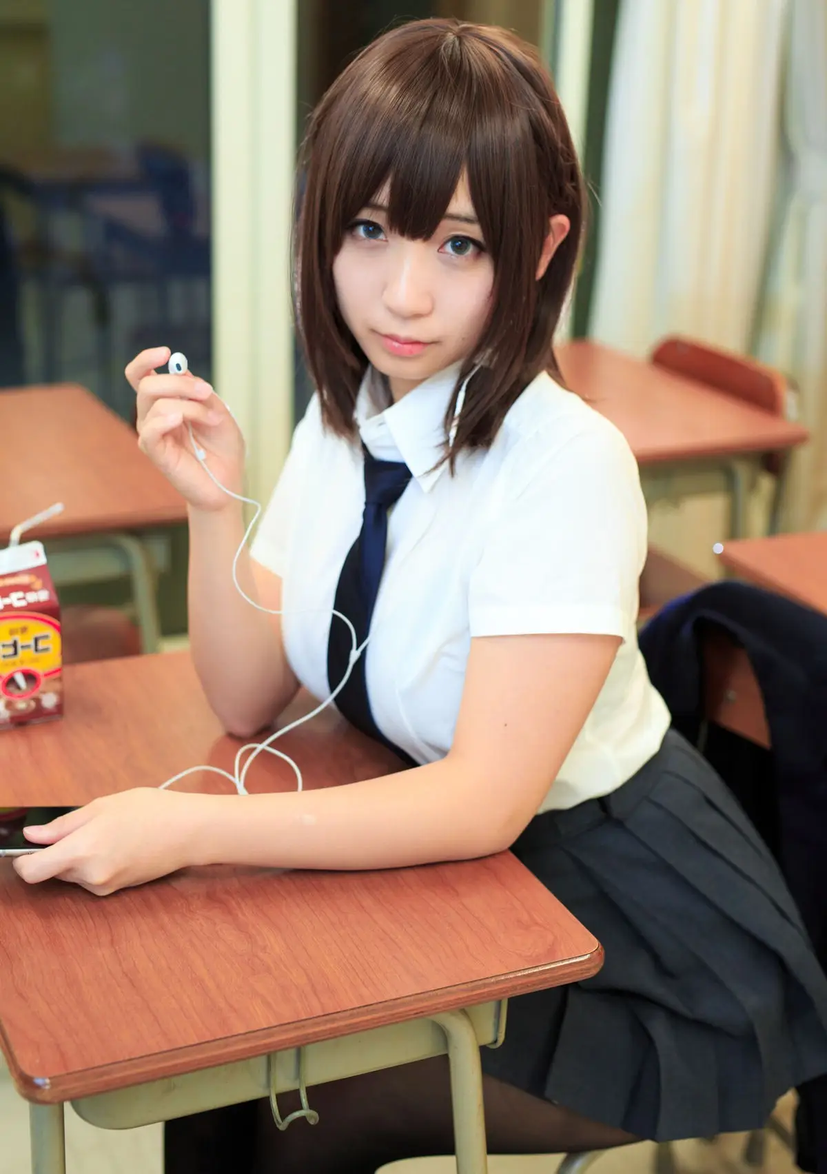 This captivating image captures a moment of youthful charm with Moe Iori (伊織萌) in a classic school uniform. Seated at a wooden desk her neatly styled short hair and tie create an energetic yet innocent look. Her gaze holds a touch of contemplation evoking the image of a schoolgirl lost in her thoughts perhaps during a break or after a demanding class. The blend of her natural beauty and the school setting offers an authentic relatable portrayal of "Monday's Child" (月曜日のあの子). Every detail from the earbud to the drink on the desk contributes to a vivid snapshot of student life inviting viewers to appreciate this serene scene.#MoeIori #IoriMoe #SchoolUniform #JapaneseSchoolgirl #YouthfulVibes
