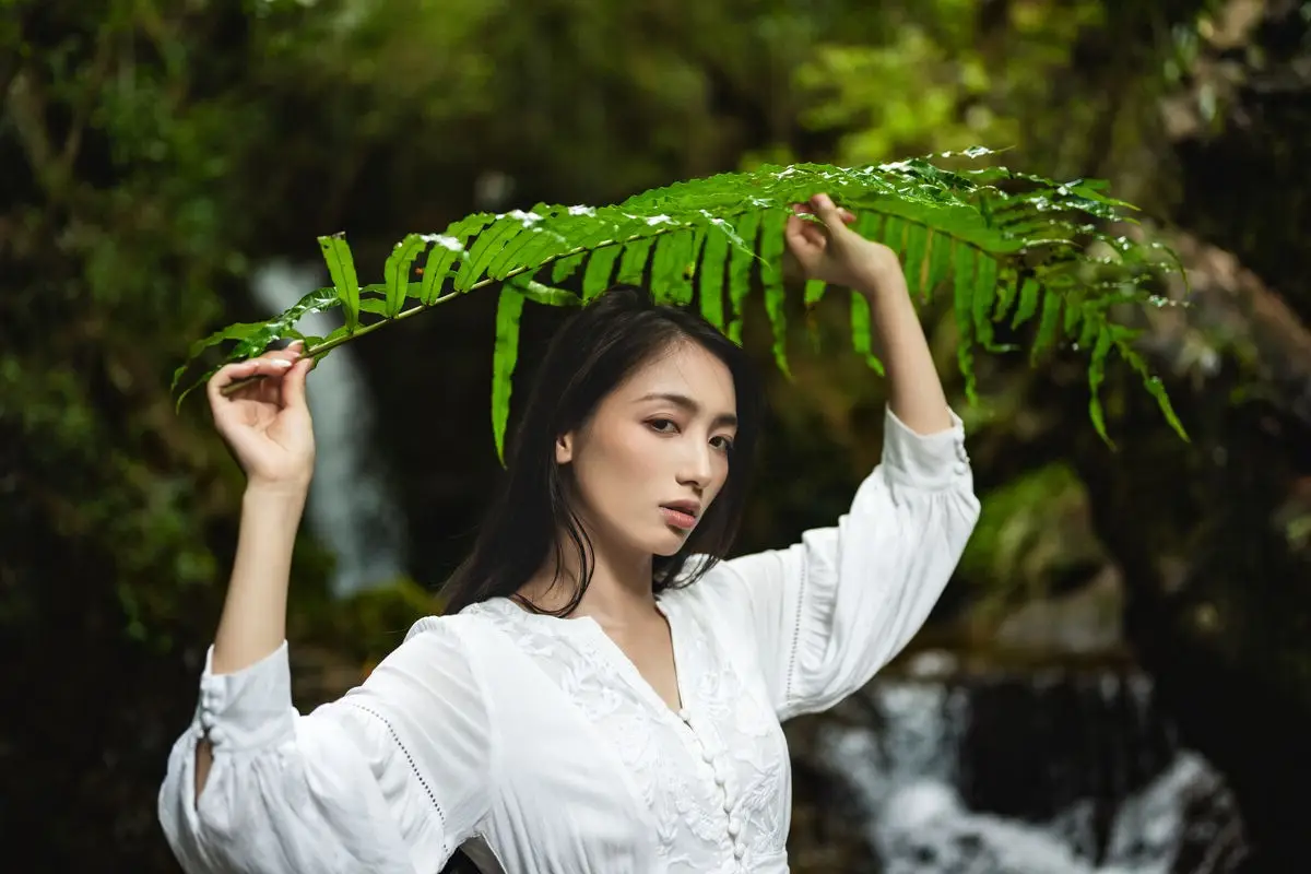 Discover the captivating beauty of Zai Lai Wan Su Rou in the YiTuYu Vol.8526 series. She embodies an ethereal muse lost amidst a lush green forest where a gentle stream flows and a serene waterfall cascades. Dressed in a pristine white gown and adorned with a large fern leaf Zai Lai Wan Su Rou seamlessly merges with the wild natural setting creating an emotionally rich artistic tableau. This moment beautifully captures the profound connection between humanity and the natural world evoking a sense of peace and mystery. Each photograph tells a story of pure beauty and the freedom where every soul finds its own forest.#ZaiLaiWanSuRou #YiTuYu #ForestMuse #NatureBeauty #ArtisticPhotography