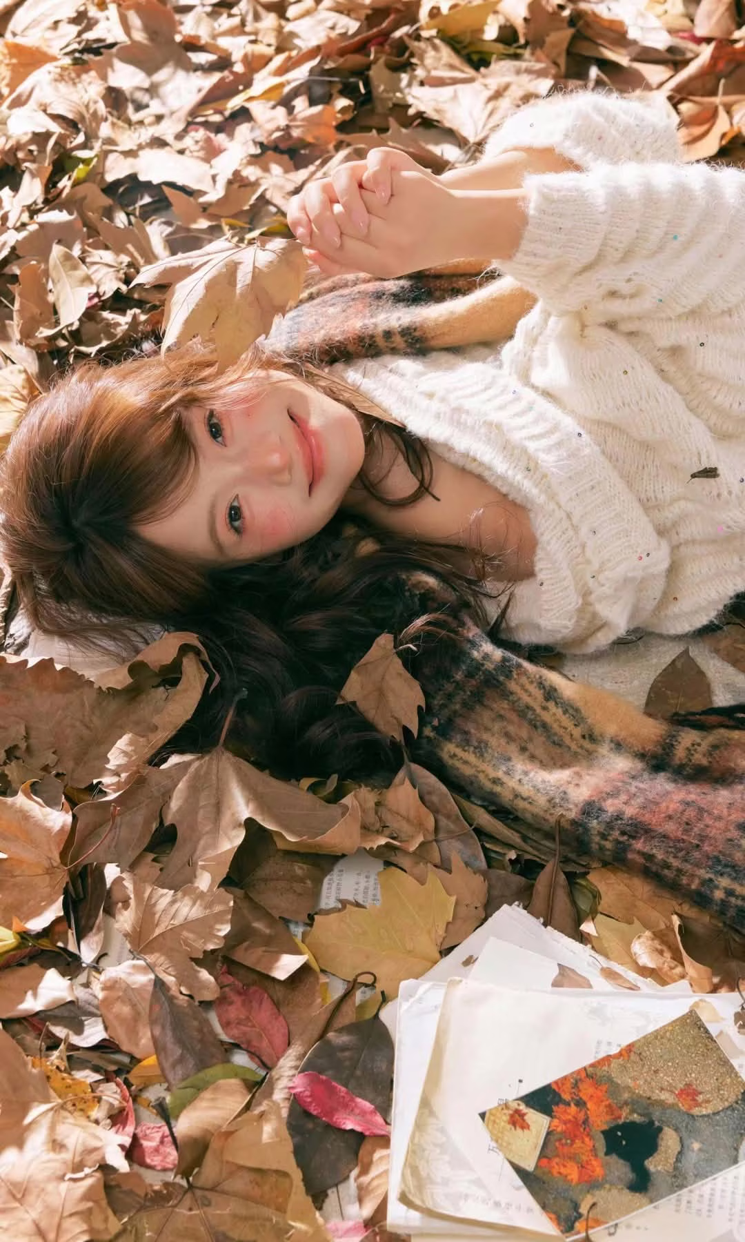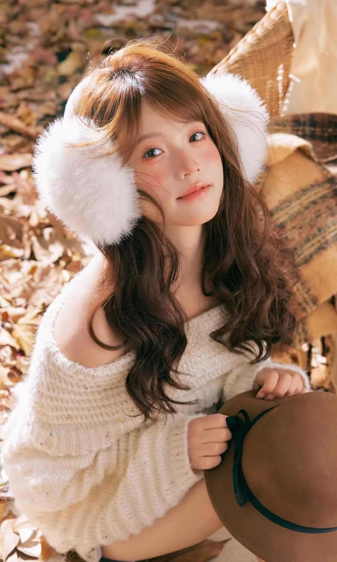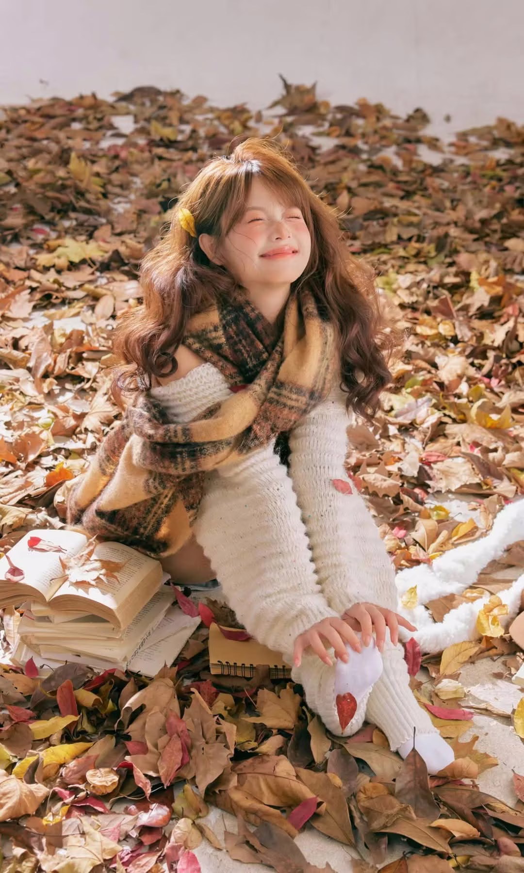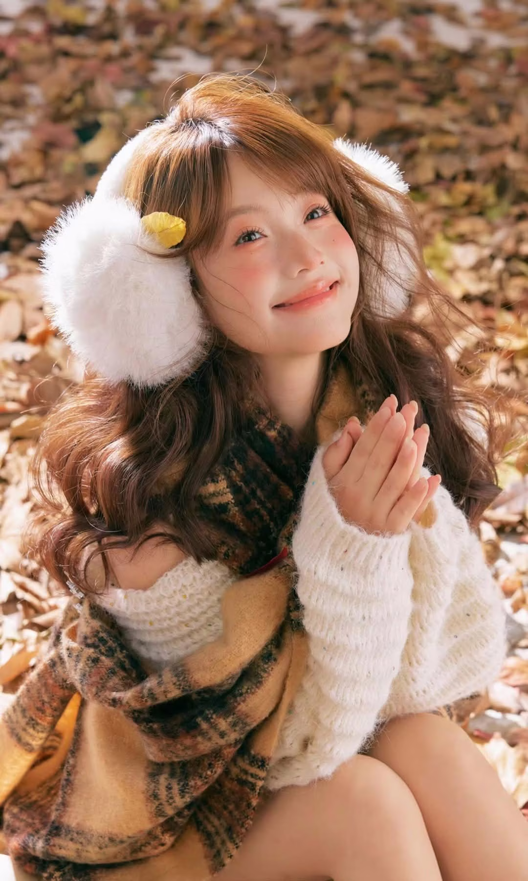 This VGU No50 image captures a beautiful young woman radiating a bright smile amidst a romantic autumn setting. She sports a warm knit sweater and a plaid scarf complemented by soft fluffy earmuffs creating a style that is both adorable and cozy. The fallen golden leaves carpeting the ground further highlight her pure and vibrant beauty. Her sparkling eyes and naturally rosy cheeks convey a sweet and approachable charm. The photograph not only freezes a moment of beauty but also fully conveys the gentle and romantic atmosphere of autumn. This is an ideal image for anyone who appreciates natural beauty and warm autumn winter fashion. It will surely melt everyone's hearts. #Vietnamese #pretty #charm
