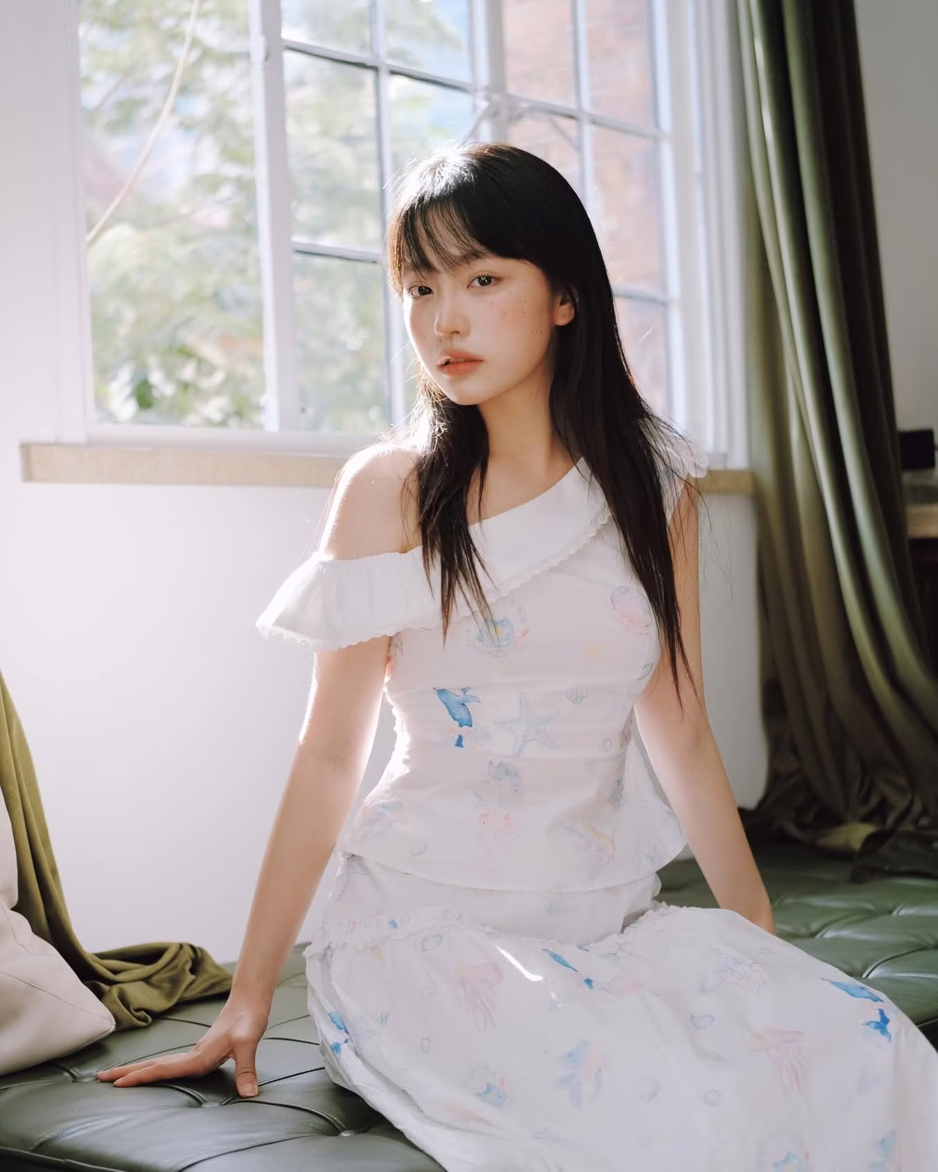 This VGU No.94 image captures a serene moment of a young woman radiating natural and graceful beauty. Dressed elegantly in a pristine white dress, she sits by a window bathed in soft, gentle light. The natural illumination beautifully highlights her smooth skin and long, lustrous hair, creating a dreamy and peaceful ambiance. Her calm and thoughtful expression exudes an an air of elegance and charm, inviting viewers to appreciate a beauty that is unadorned yet shines brightly through its simplicity and sophistication. More than just a portrait, this is an art piece conveying subtle, captivating emotions. #Vietnamese #pretty #charmĐông Hoàng