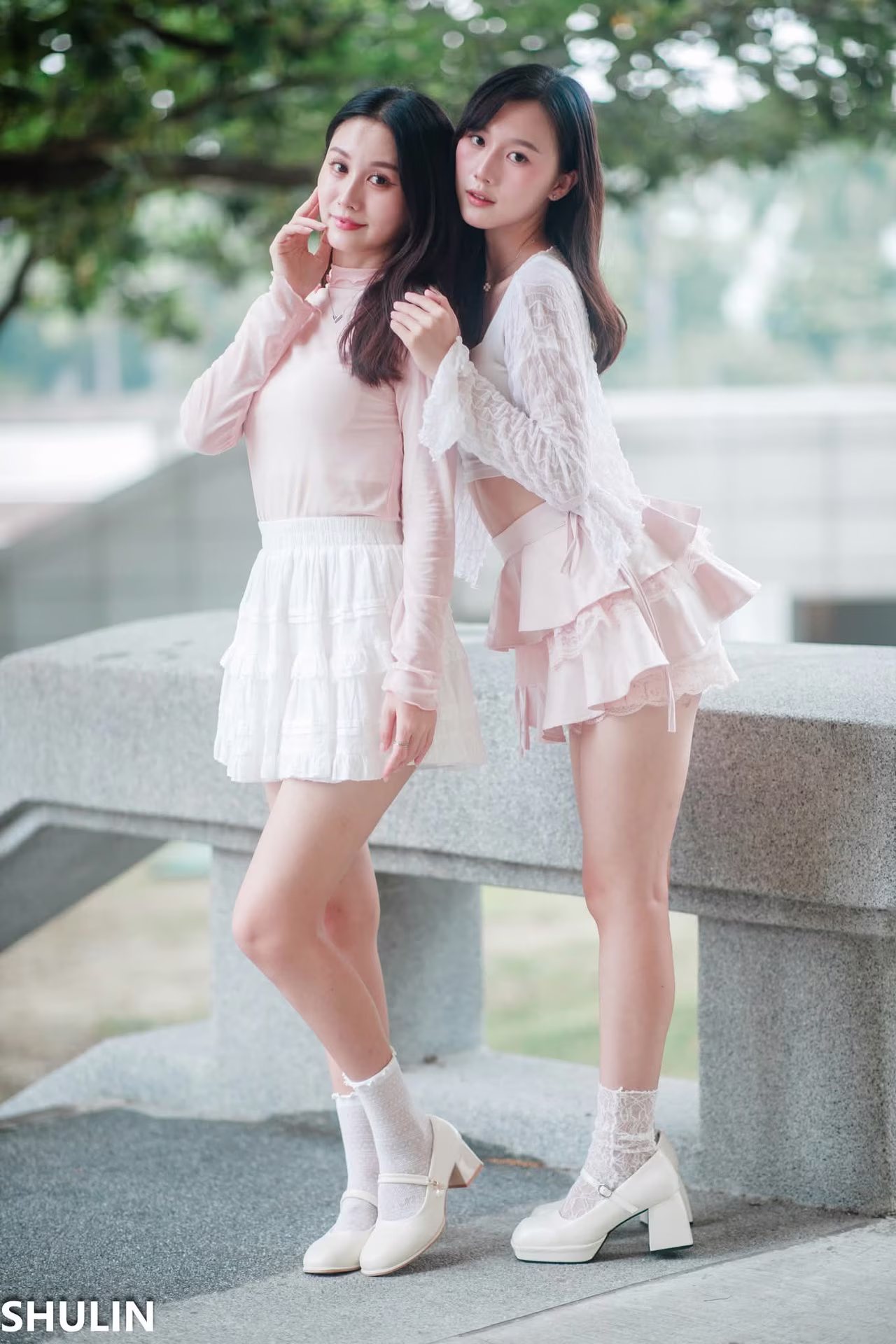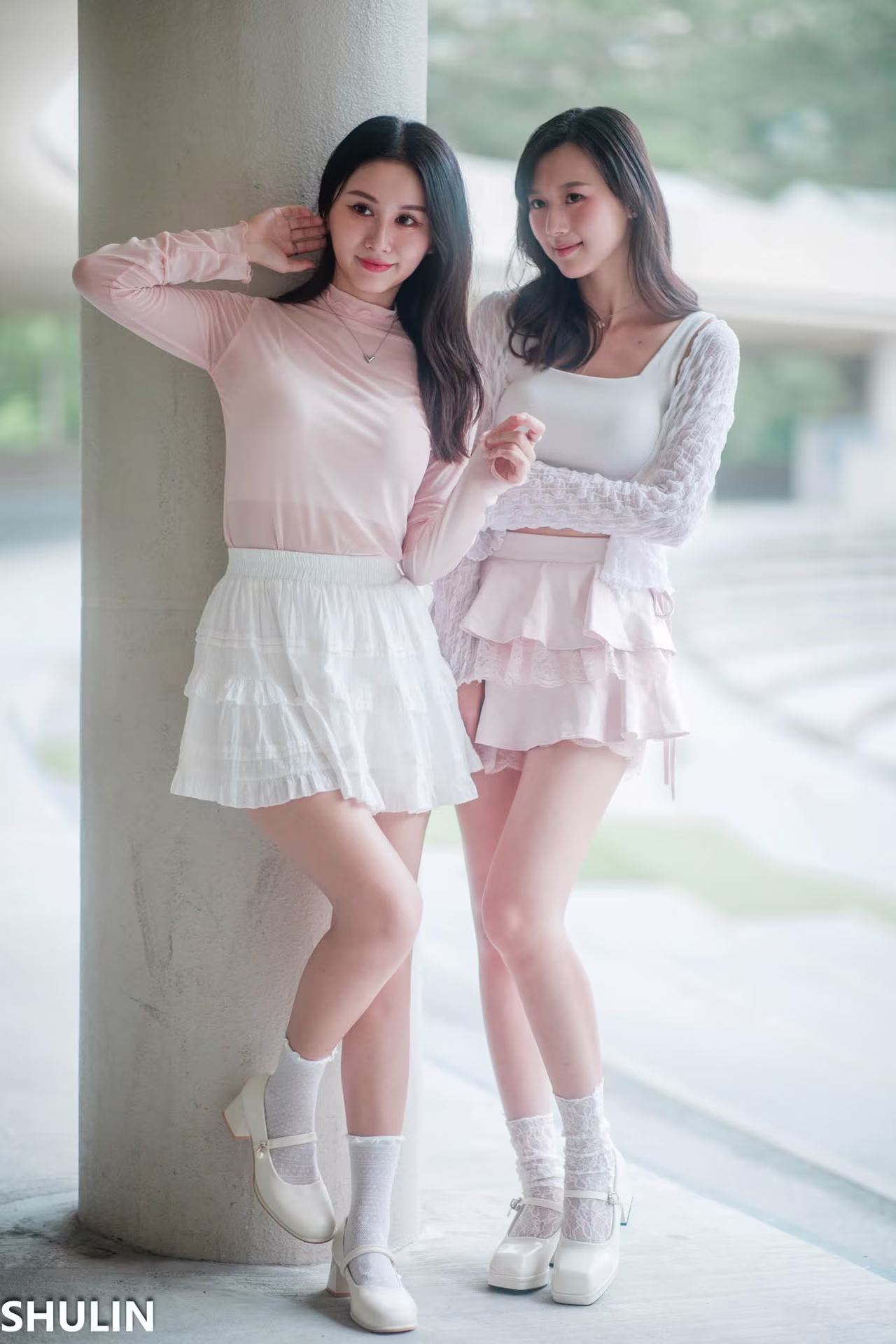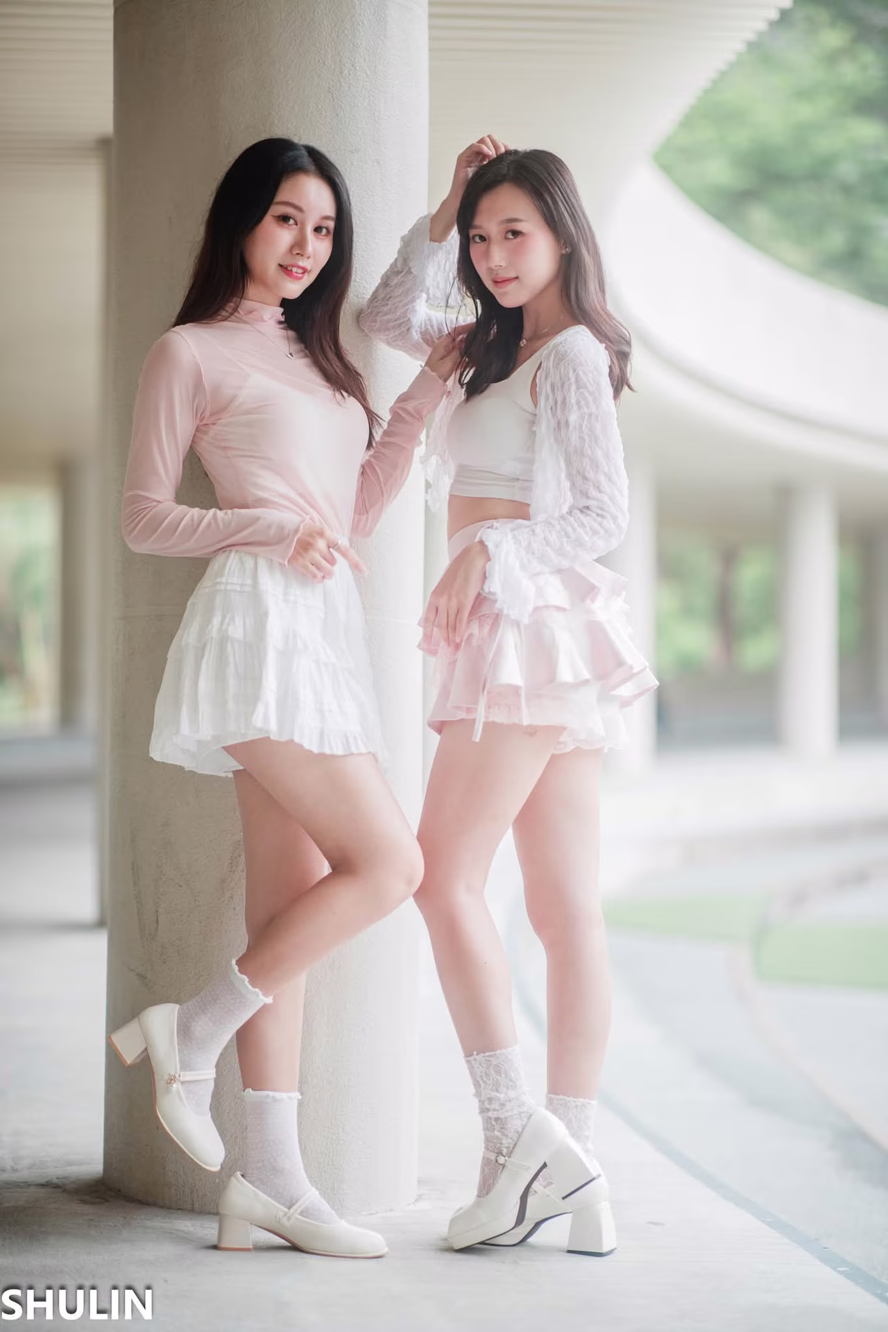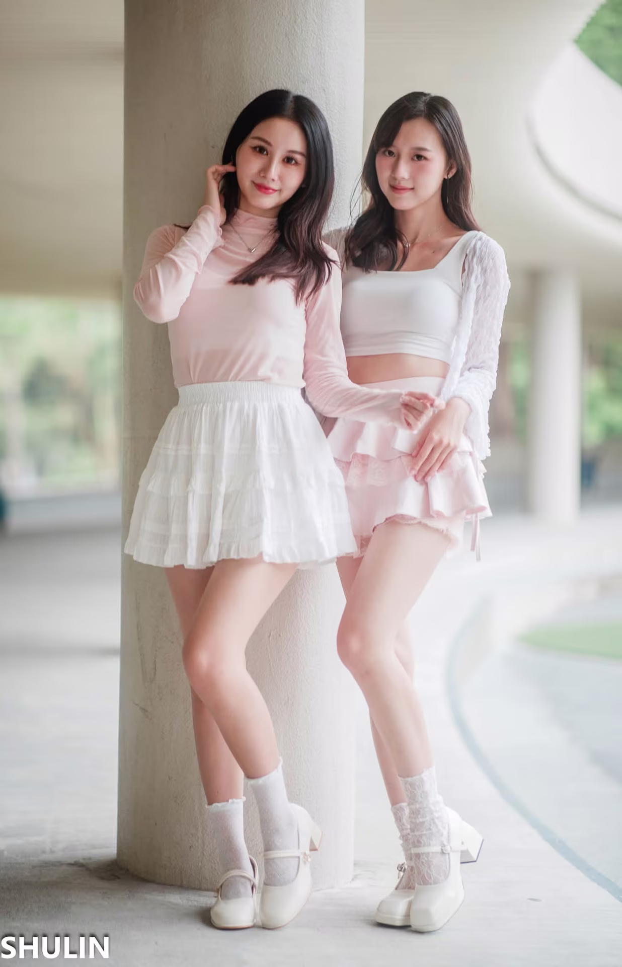 The VGU No75 image captures two youthful and beautiful women exuding captivating grace. They are adorned in elegant fashion attire featuring soft pastel hues of pink and white. Their pleated mini skirts paired with delicate long-sleeved tops create a sweet feminine style perfectly suited for bright summer days. Each woman possesses her own unique charm yet together they form a harmonious and attractive ensemble. This photograph not only showcases a refined aesthetic in clothing choices but also evokes a sense of freshness and vibrant youthful energy. It serves as wonderful inspiration for enthusiasts of feminine and elegant fashion. #Vietnamese #pretty #charmVGU No.74: Vietnamese Dreamy Beauty in a Serene Green Landscape