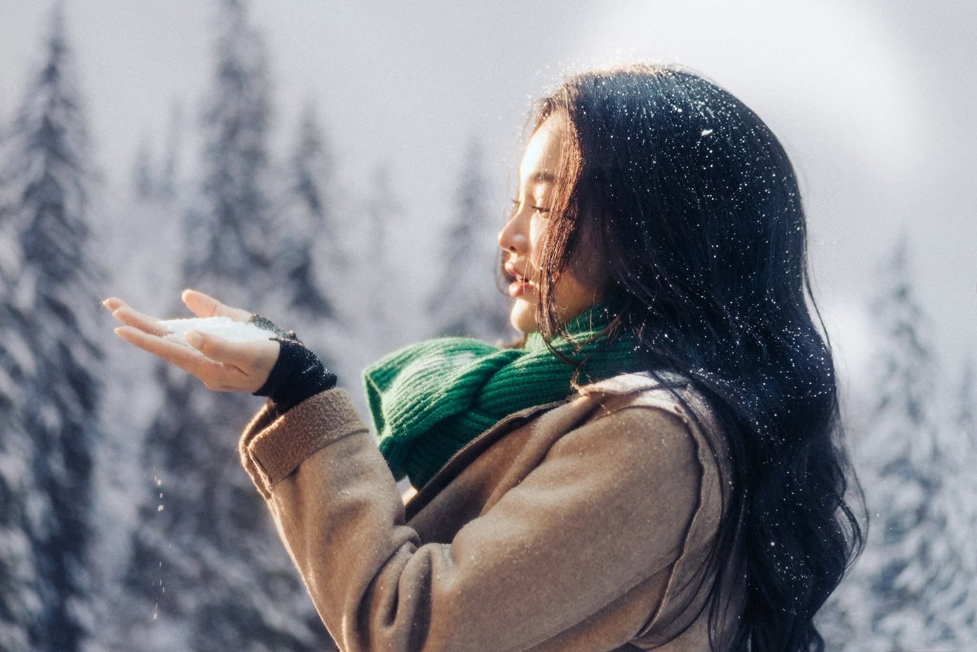Asian Beauty in Winter Snow: Radiant Girl's Portrait