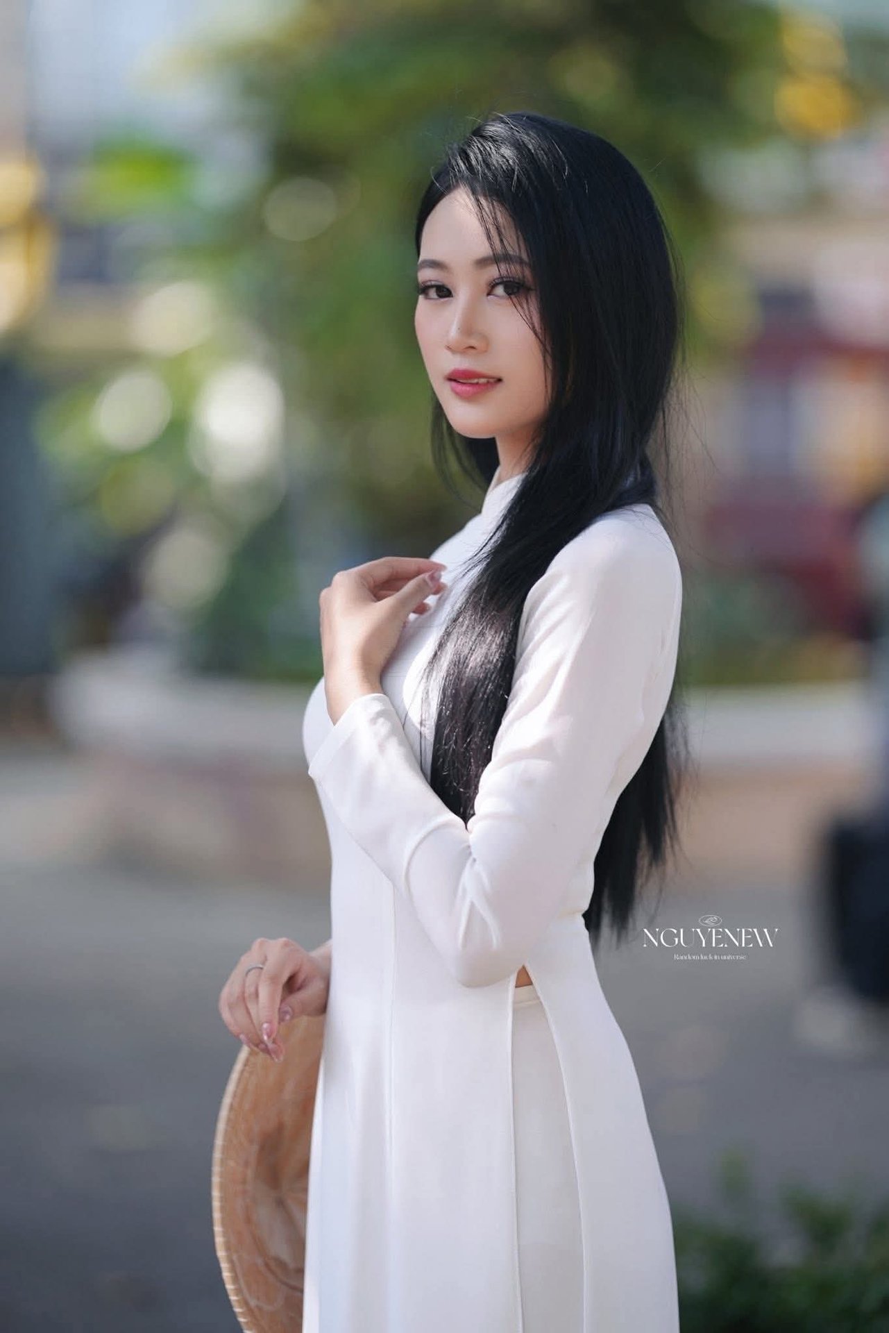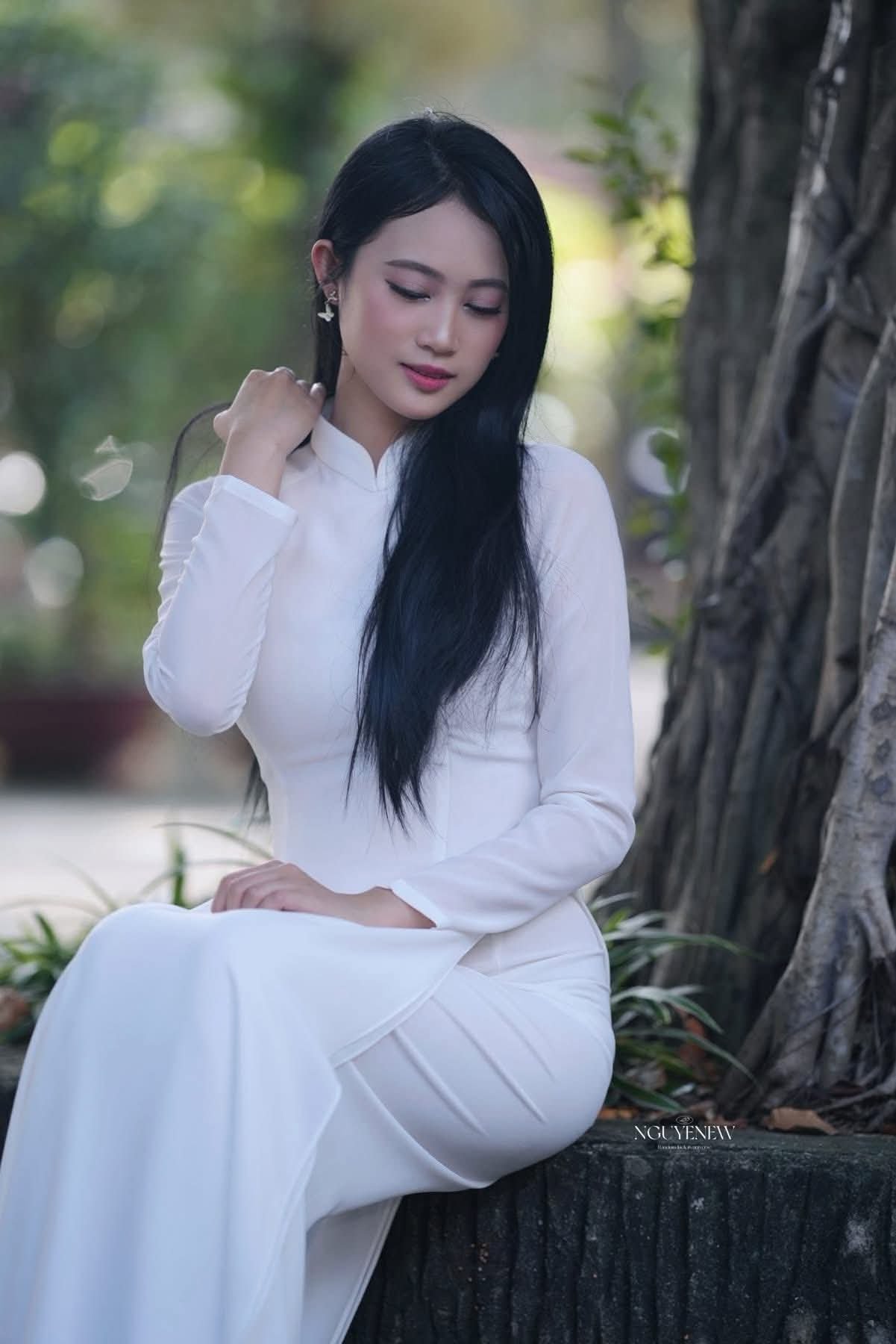 This stunning image captures a graceful Vietnamese girl adorned in a pristine white Ao Dai. This traditional attire beautifully accentuates the elegant charm and gentle spirit of Vietnamese women. With her long flowing dark hair and a serene smile the girl radiates a unique beauty that is both contemporary and deeply rooted in tradition. The Ao Dai is more than just clothing it is a cultural emblem embodying the very soul of Vietnam. This picture perfectly blends natural beauty with the refined essence of Vietnamese traditional culture evoking a sense of peace and ethereal grace.