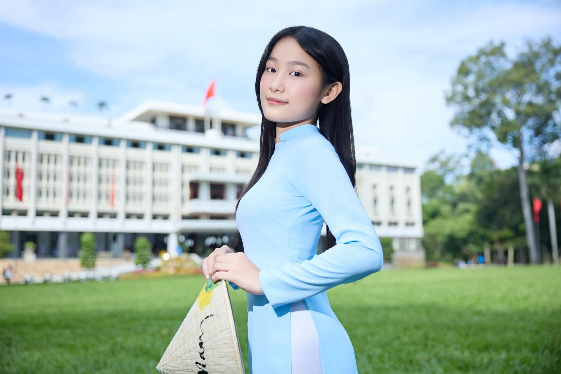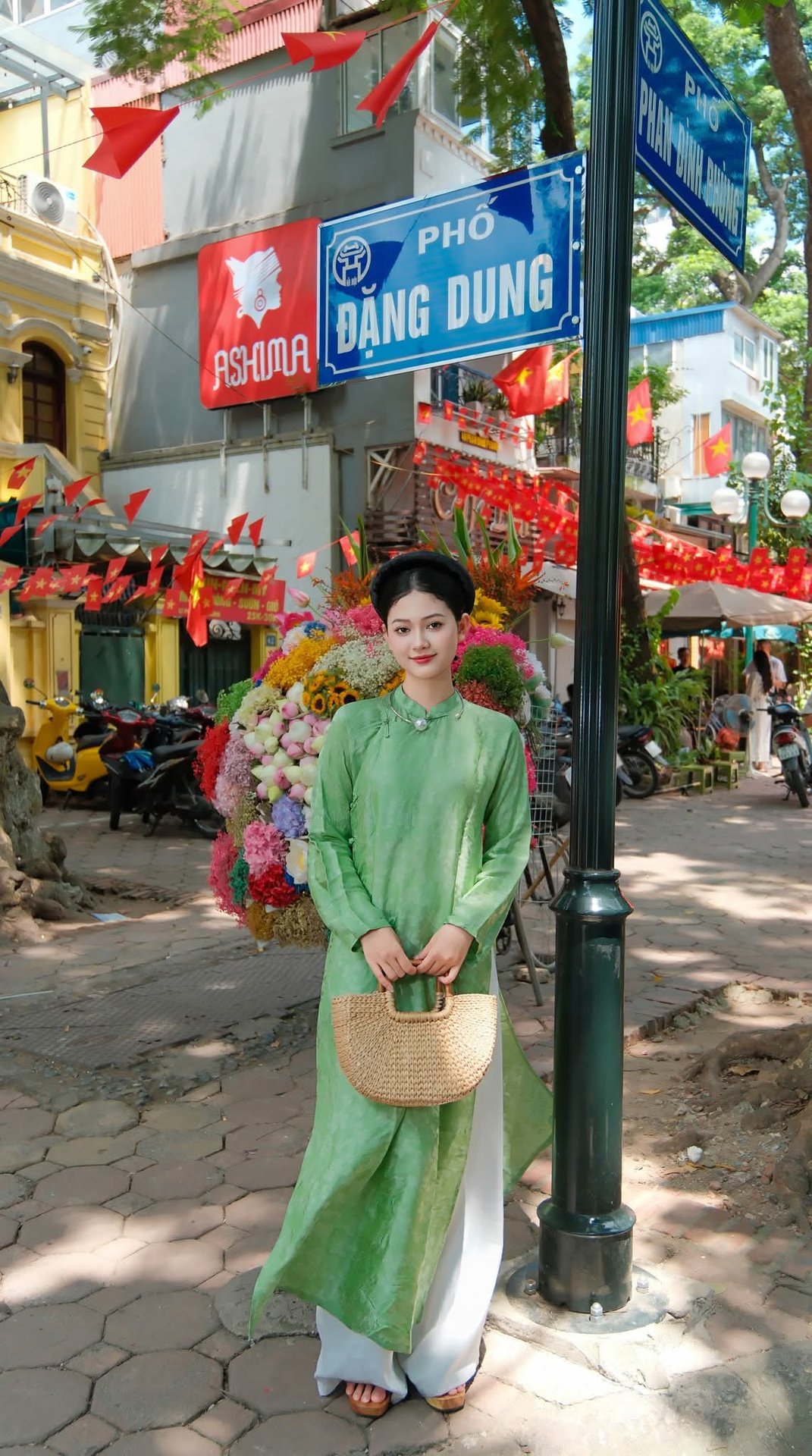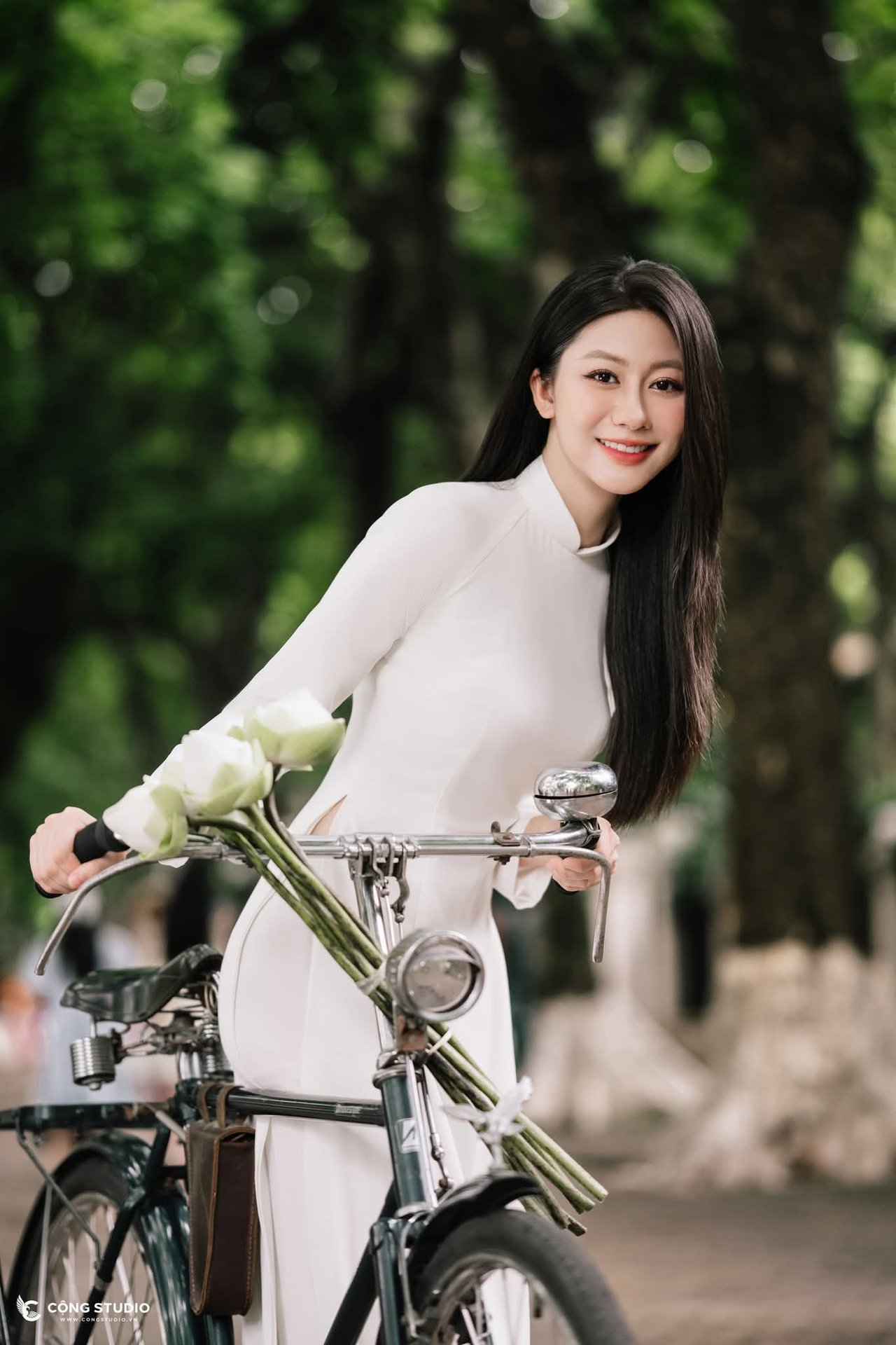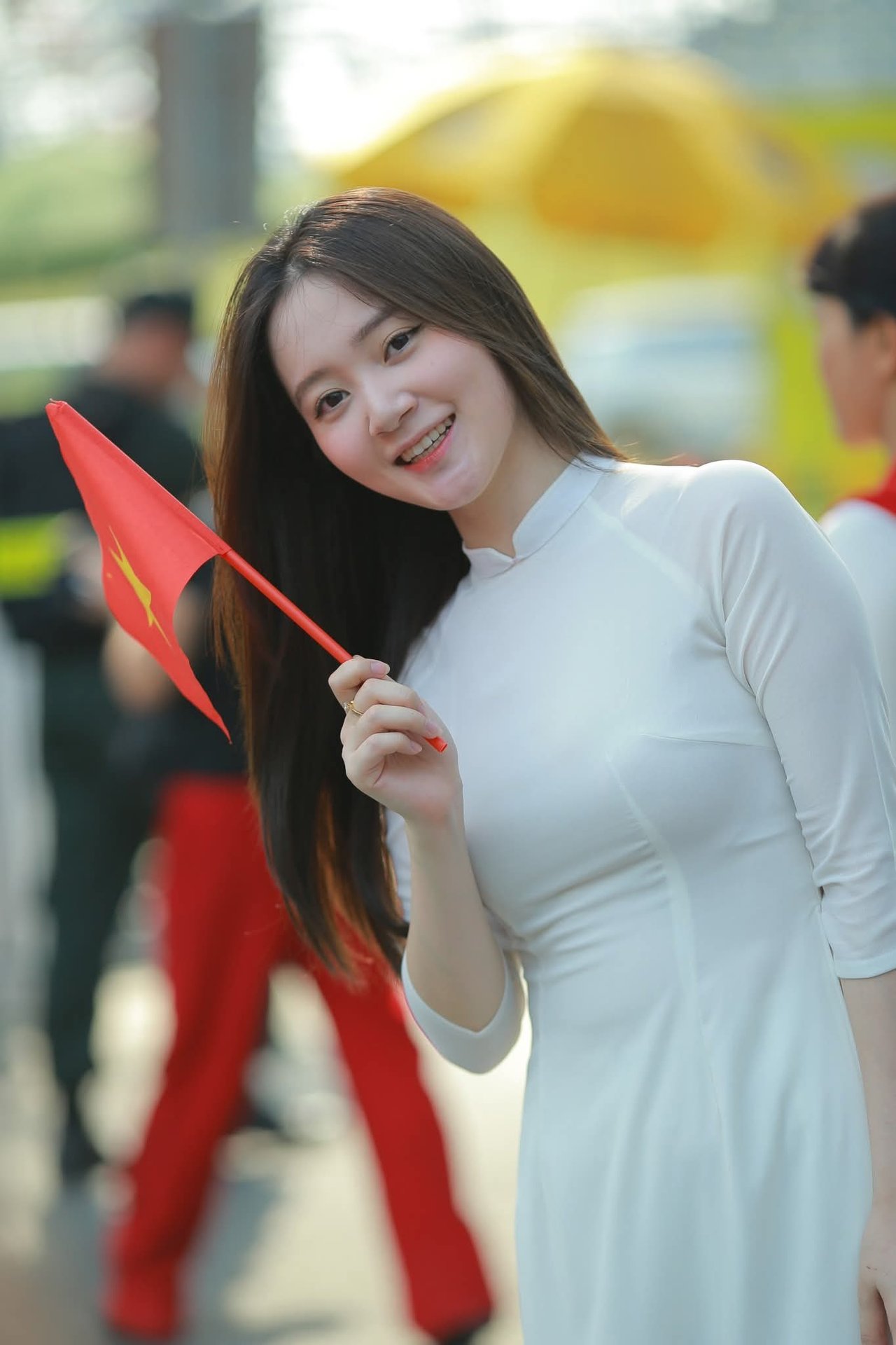 Nét đẹp dịu dàng với áo dài trắng trong không khí đại lễ của toàn dân tộc, em đẹp như mùa thu Hà Nội