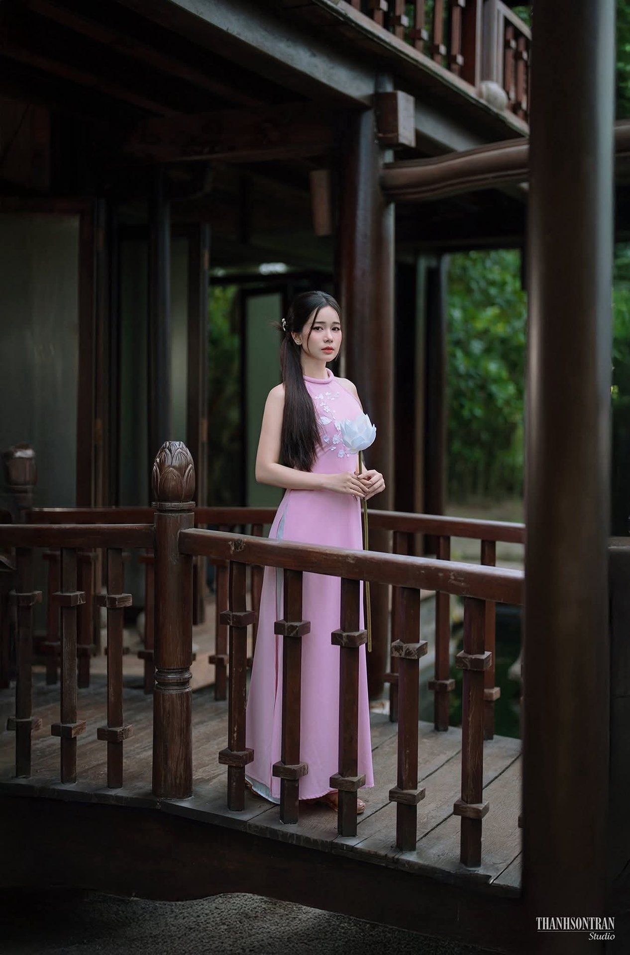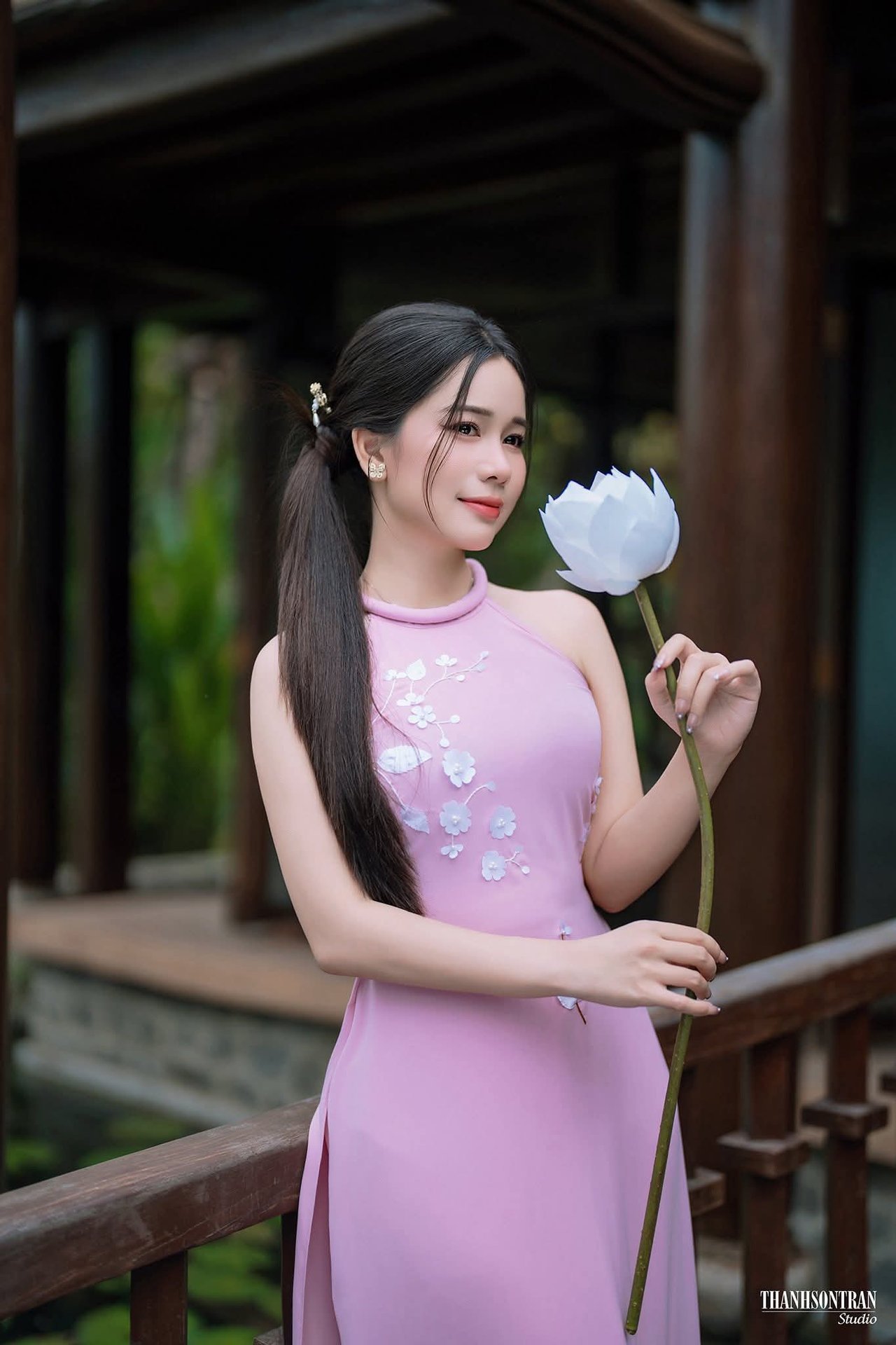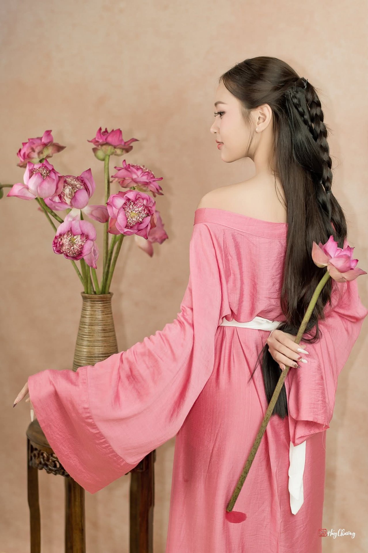 Graceful Young Woman in Pink with Lotus Flowers | Vietnamese Beauty Photo