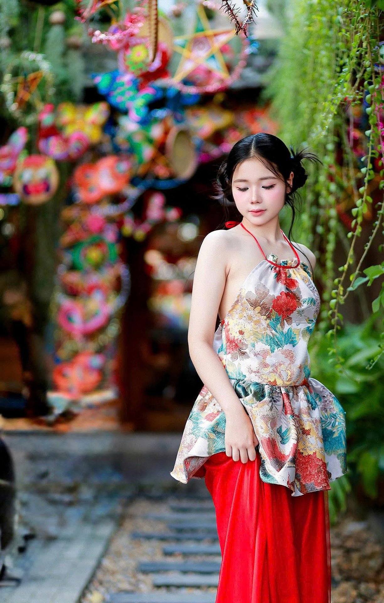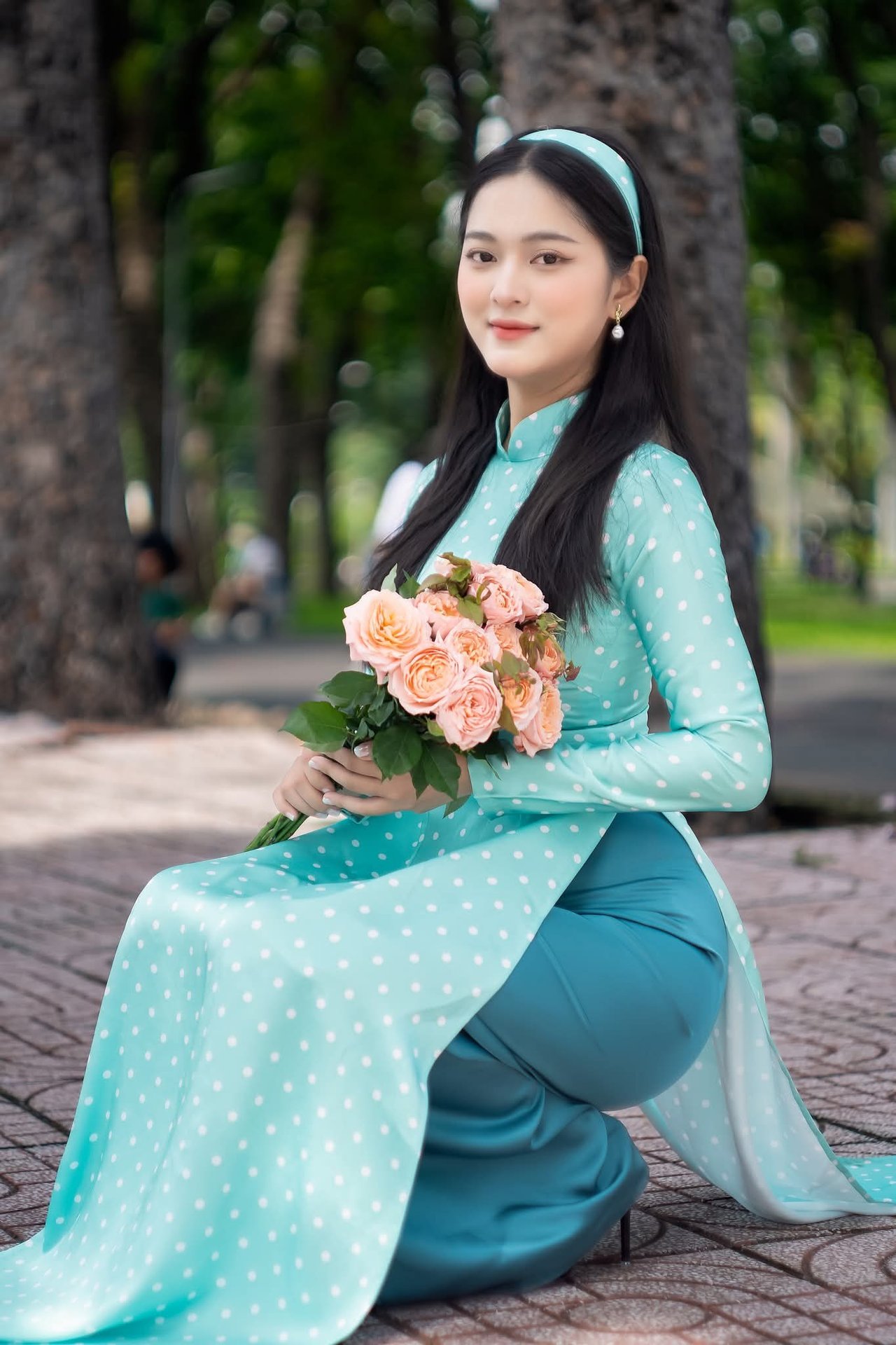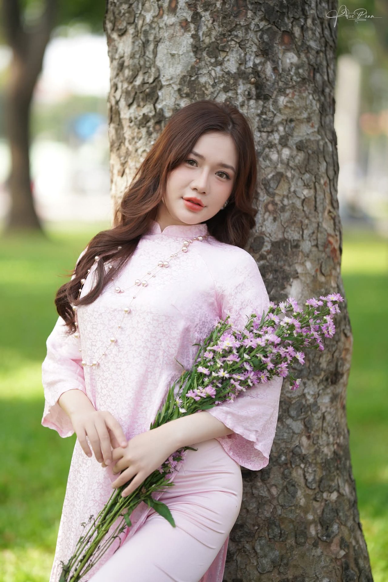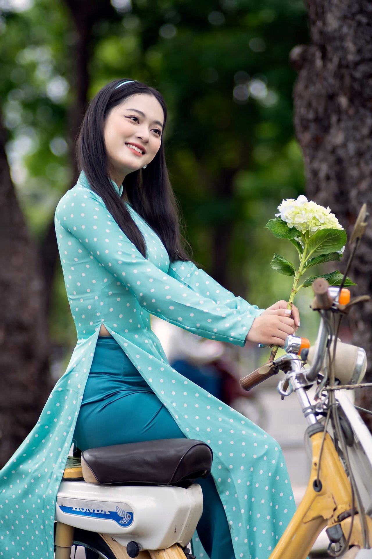 Cô gái Việt Nam dịu dàng trong mùa hoa, một con đường đầy màu sắc