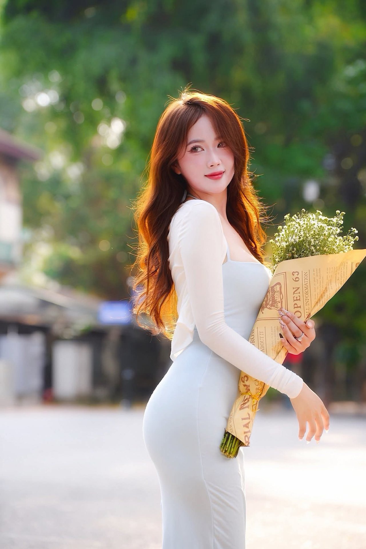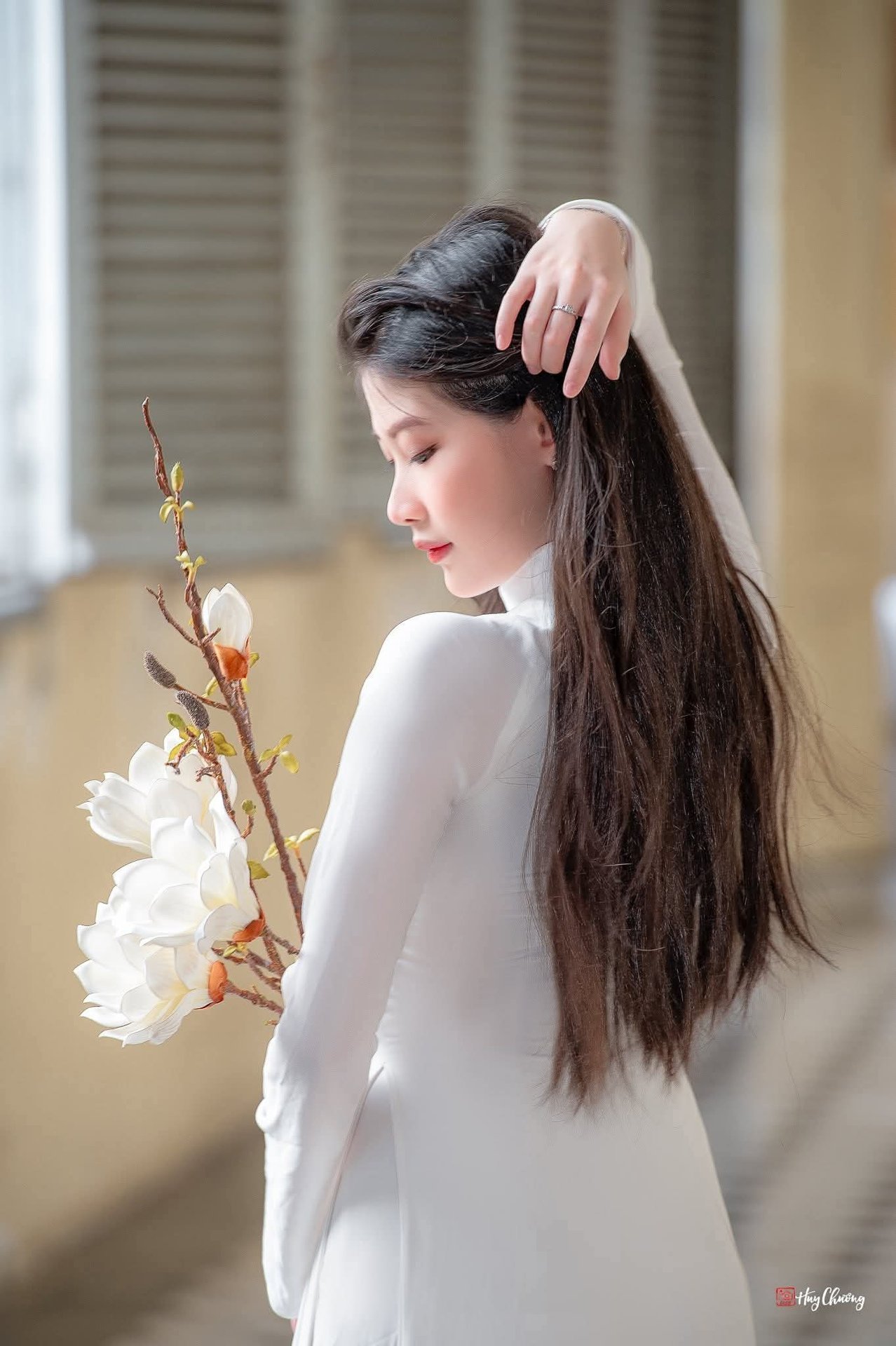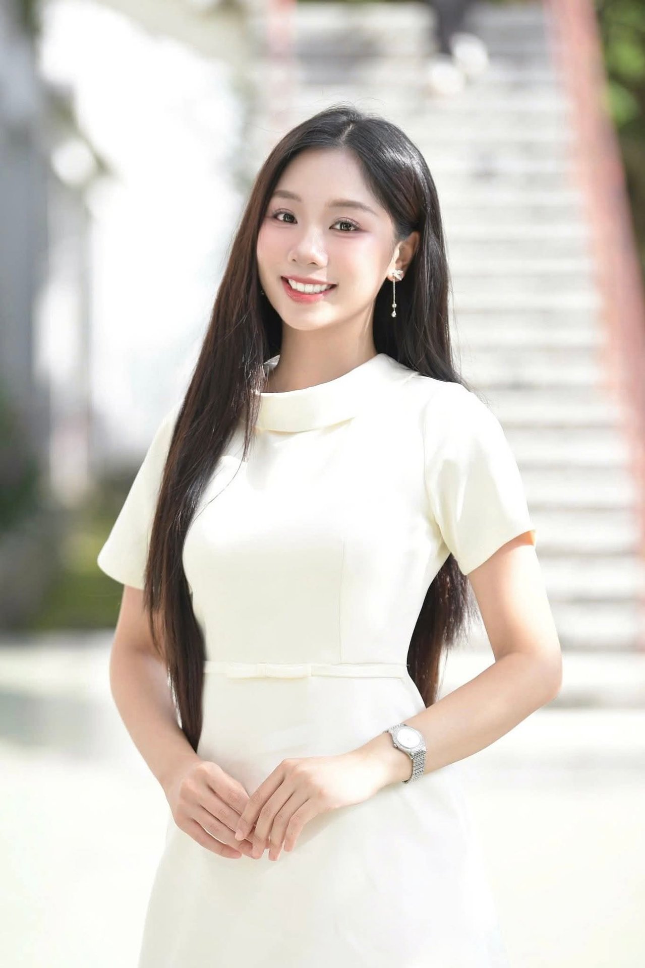 Stunning Vietnamese Girl Portrait: Elegant White Dress & Captivating Charm