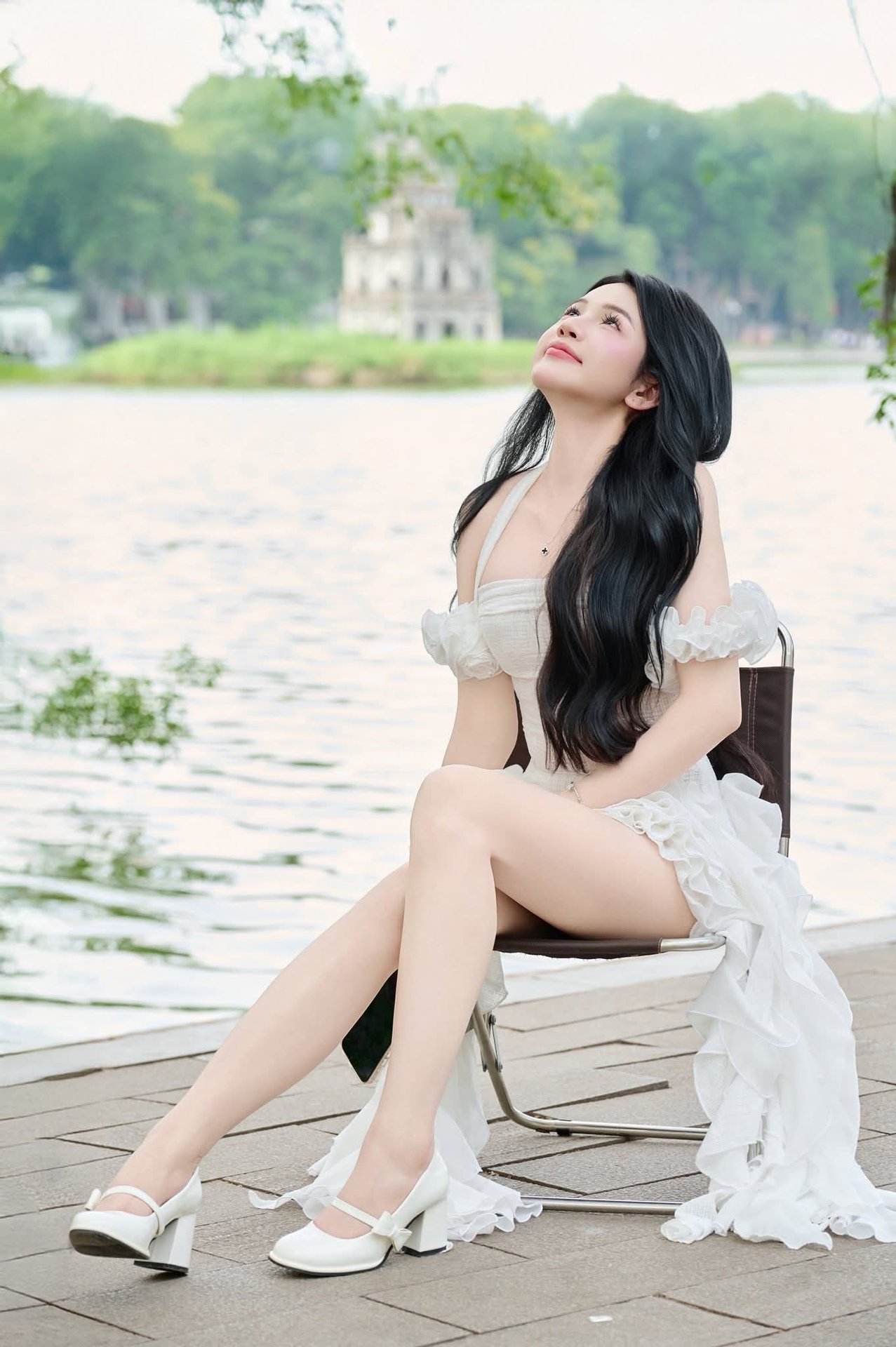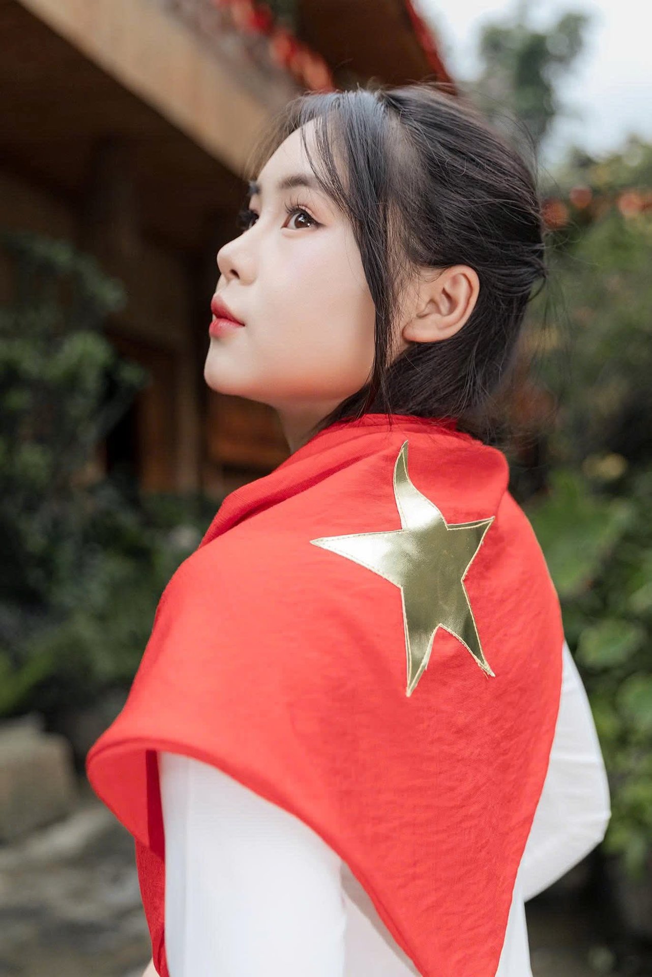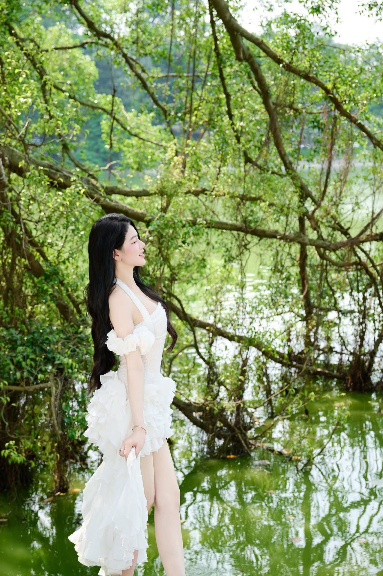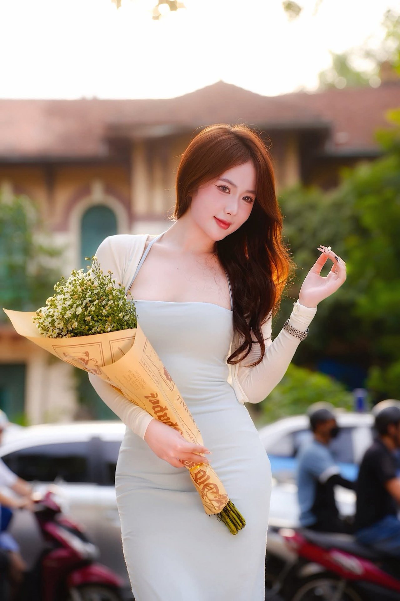 Stunning Vietnamese Girl Portrait: Elegant White Dress & Captivating Charm