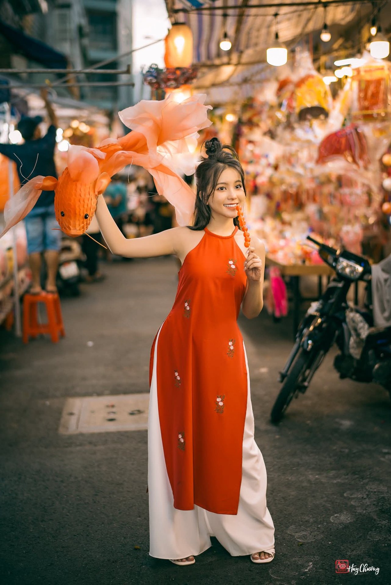 Vietnamese Mid-Autumn Festival: Graceful Girl with Traditional Carp Lantern & Poetic Beauty