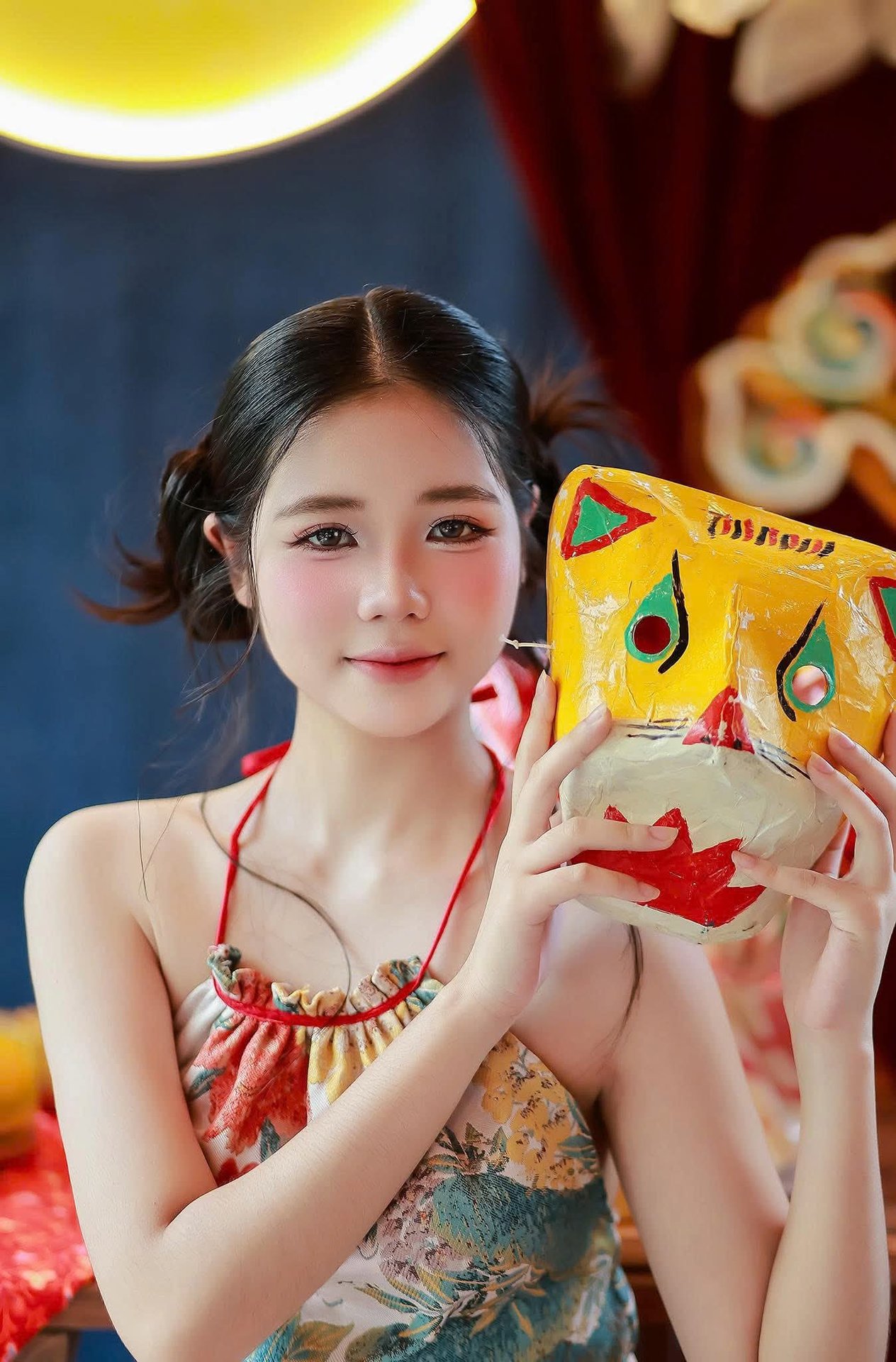 This stunning photo captures a poetic moment of a Vietnamese girl immersed in the enchanting atmosphere of the Mid-Autumn Festival. Dressed in a stylized traditional outfit, she gracefully holds a vibrant carp lantern, a symbol of luck and prosperity. Her gentle, elegant beauty perfectly blends with the rich traditional culture, creating a truly mesmerizing and thơ mộng image. This exquisite artwork is ideal for wall art, bringing the festive spirit and unique Vietnamese charm into any living space. It celebrates the beauty of Vietnamese people and their cherished traditional values.