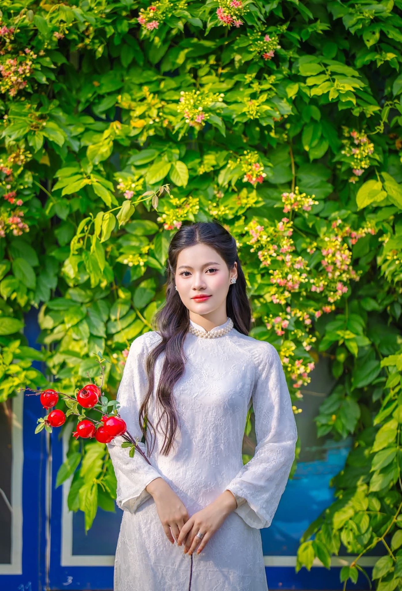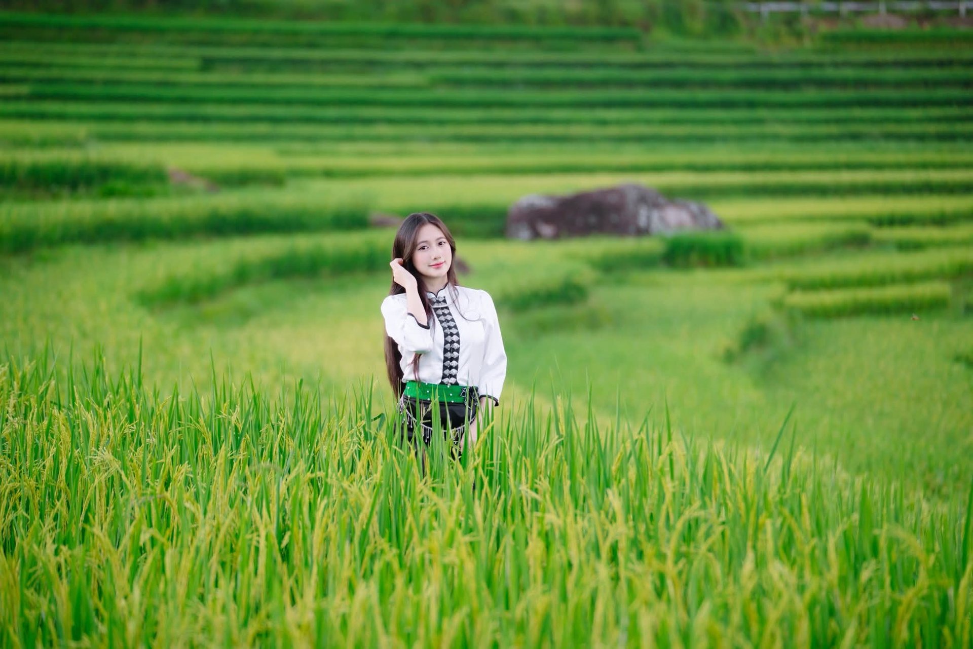 Image 1000018109.jpg captures the gentle, pure beauty of a young girl, standing out gracefully amidst a beautiful natural landscape. With a soft smile and clear eyes, she sits in a lush green grass field under a vast blue sky. This depiction of a human harmonizing with the natural scenery creates a peaceful, poetic, and vibrant tableau. Her beauty radiates purity and innocence, offering a sense of relaxation and comfort to the viewer. It's a stunning moment showcasing the harmonious connection between people and Mother Nature, a simple yet captivating beauty, ideal for those seeking tranquility and natural elegance.Elegant Vietnamese Woman in White Ao Dai Embracing Spirit of Independence