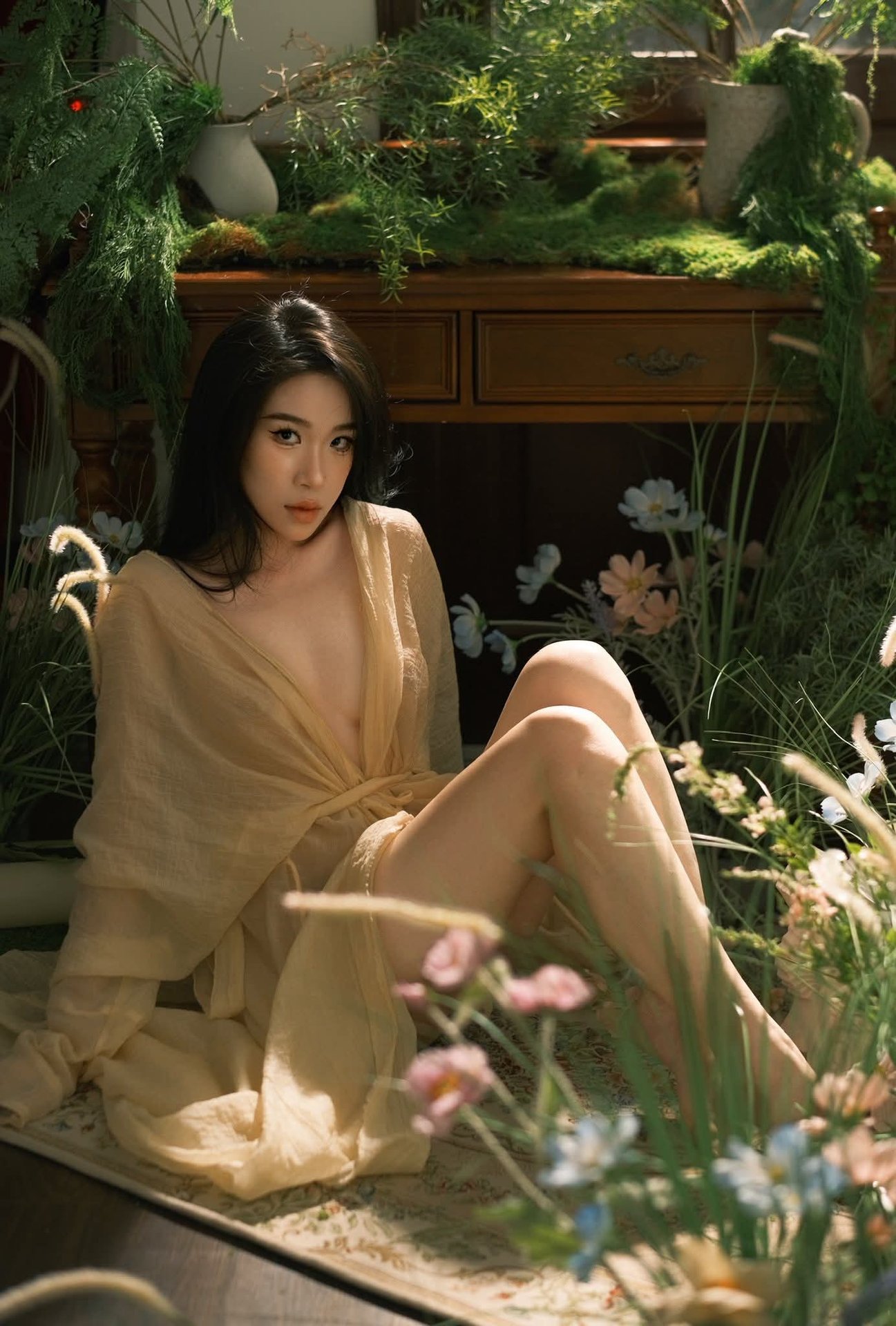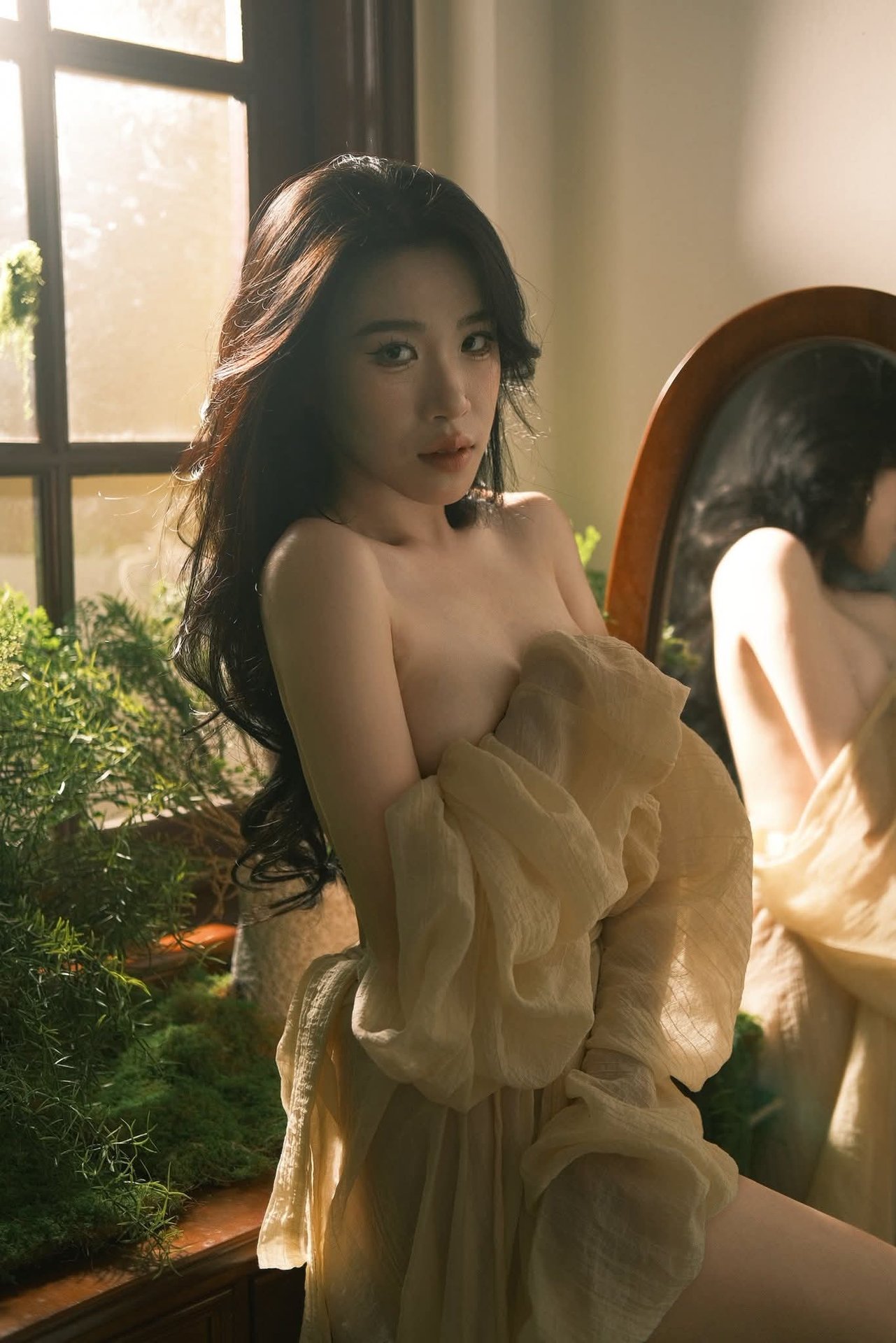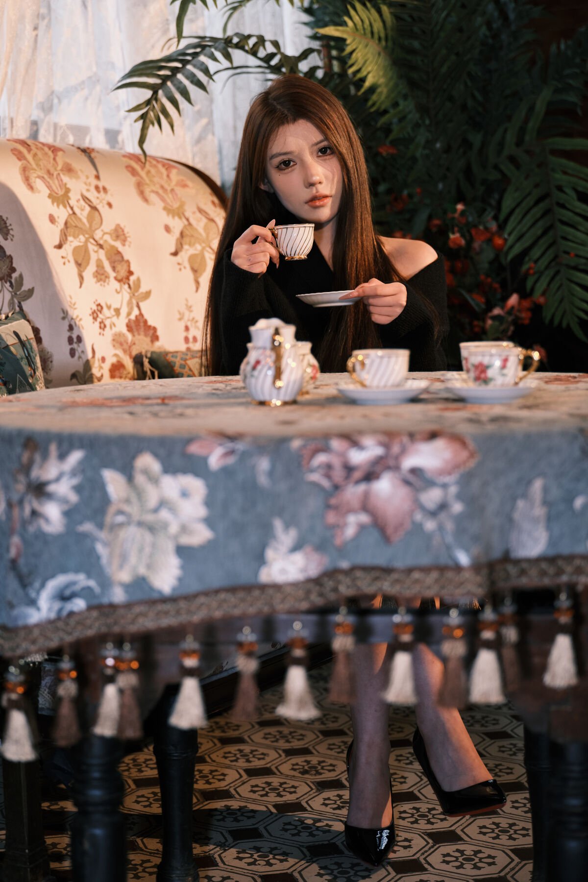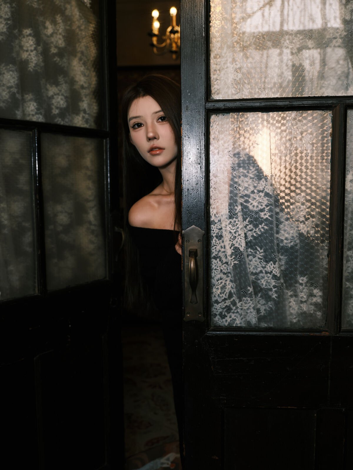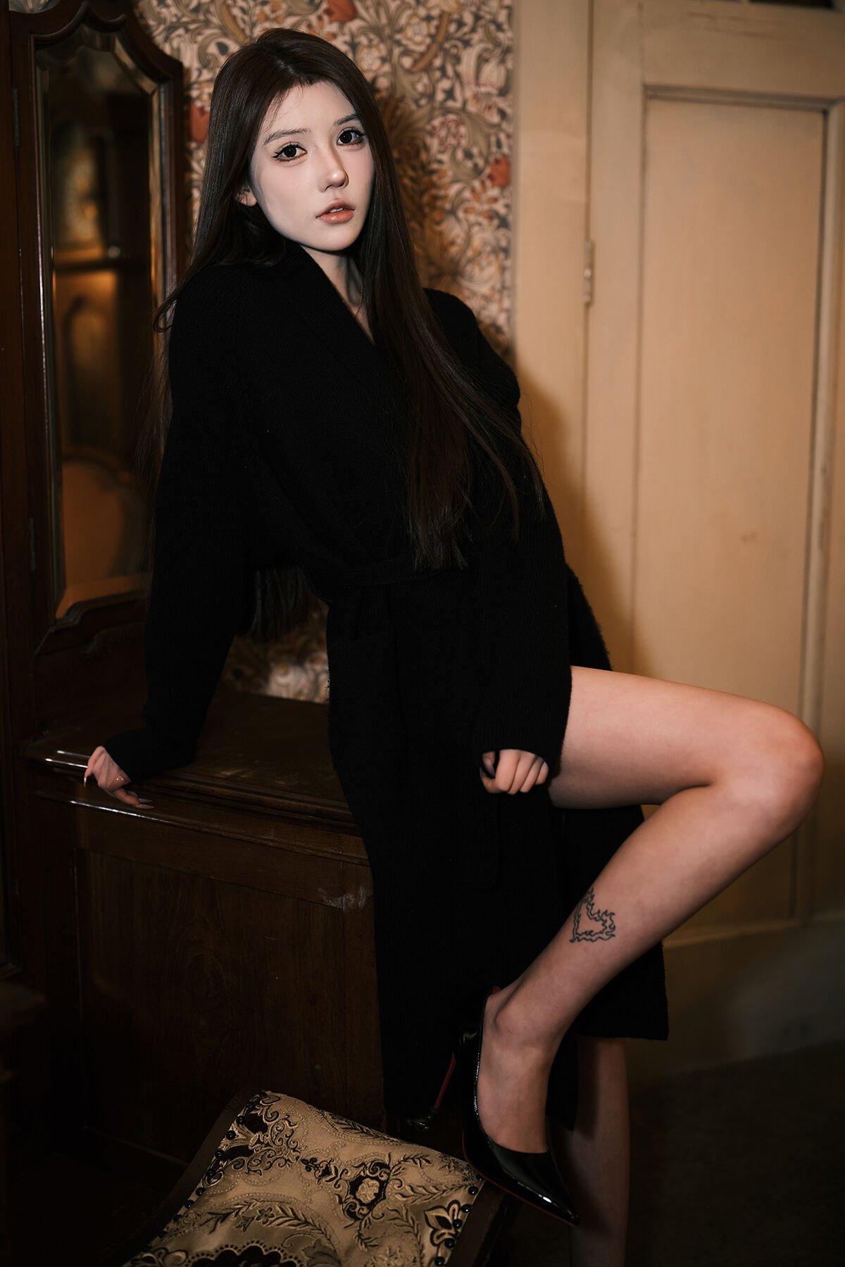 This captivating image from the YiTuYu Art Language Vol.8308 collection features model Xia Bei Fang in a stunning classic villa setting She embodies a refined elegance with her contemplative gaze and graceful posture Dressed in a simple yet sophisticated dark attire her long flowing hair adds to her alluring charm The richly patterned wallpaper and soft ambient lighting create a warm vintage atmosphere evoking the timeless beauty of an old Shanghai style villa This portrait captures a moment of serene introspection where Xia Bei Fang’s classic beauty merges seamlessly with the luxurious historical backdrop It is an artistic expression that tells a story of inner grace and captivating style