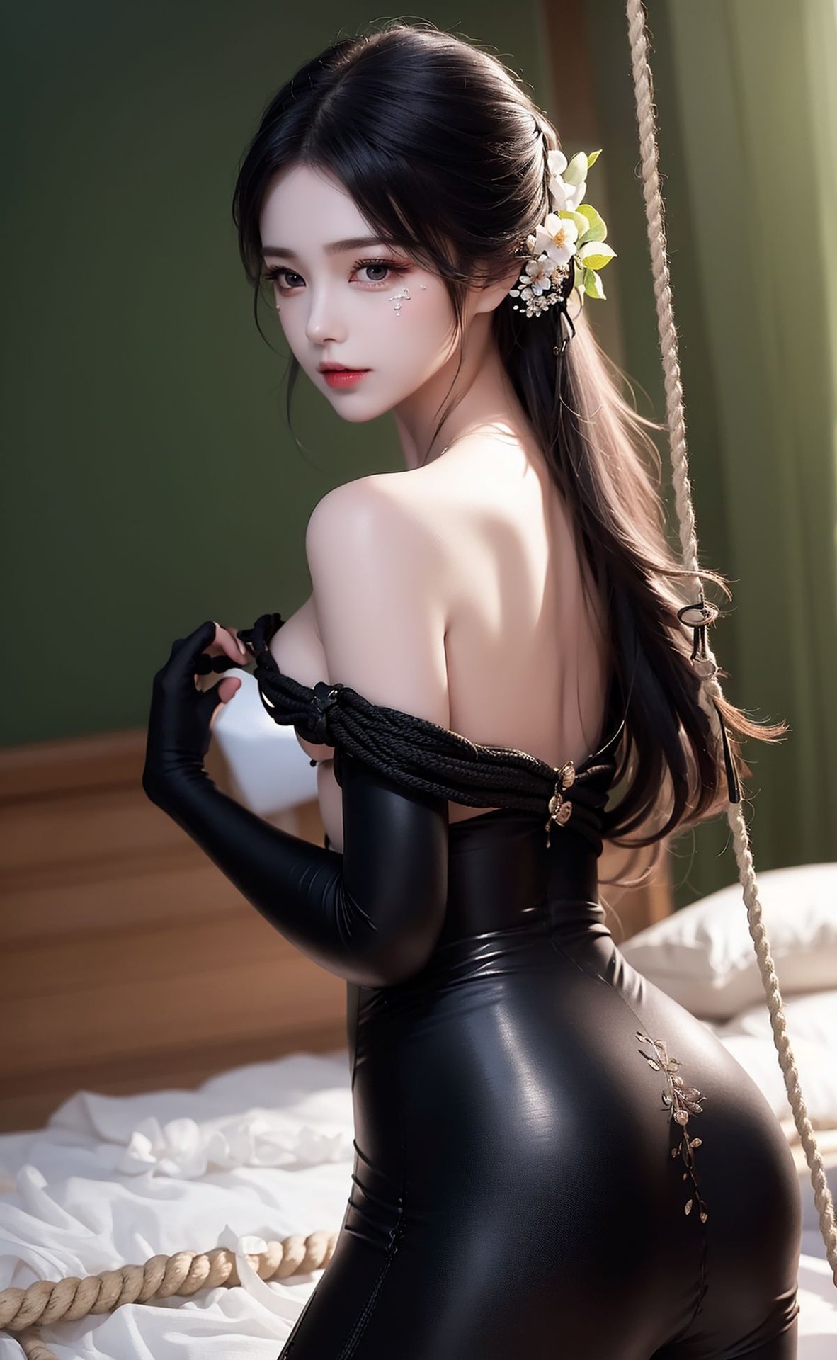 AI Generated Hyperrealistic BiAn1 Part01: Mysterious Beauty in Black Latex with Ropes