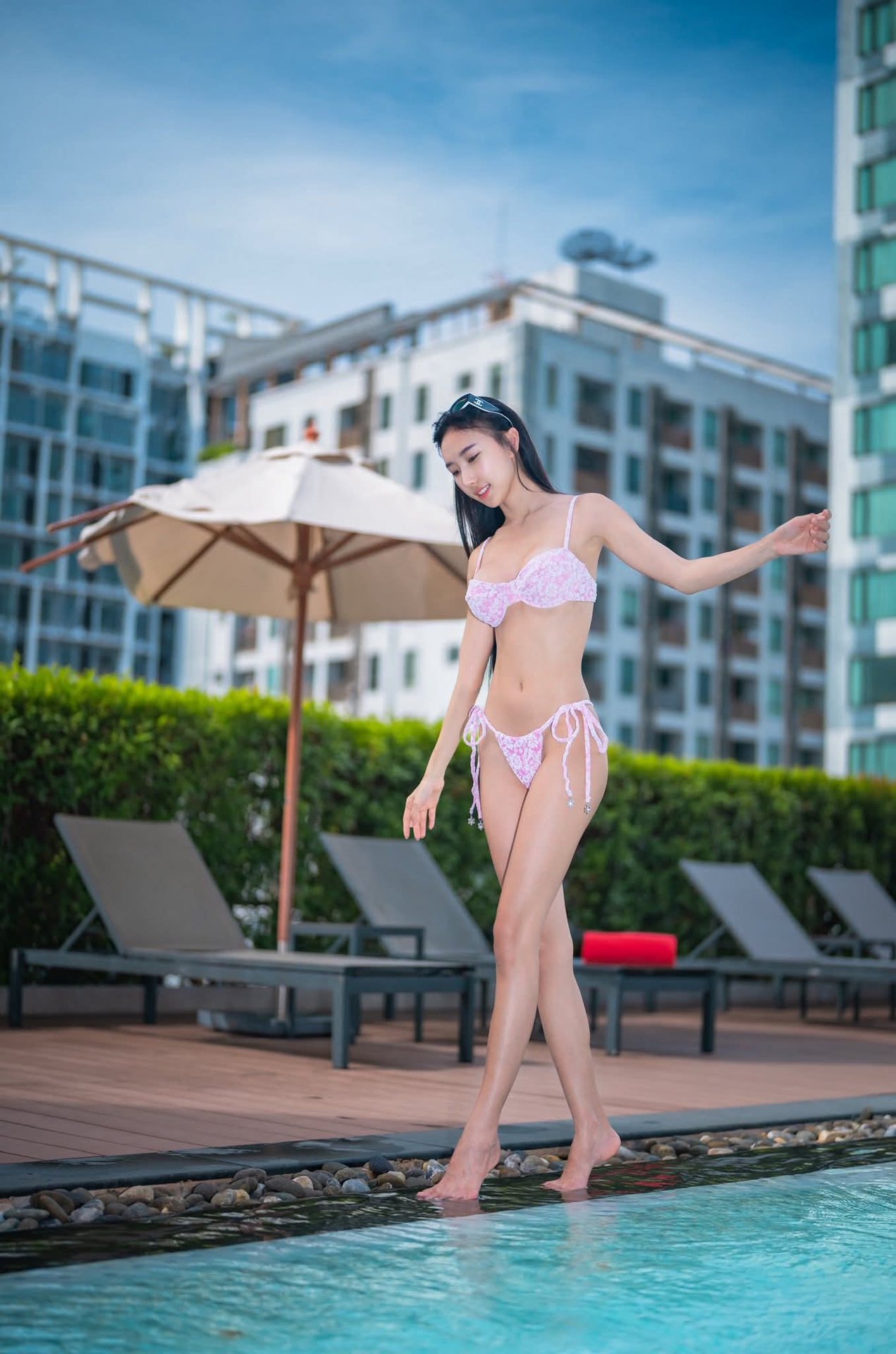 Tammy Pham radiant displaying alluring beauty by infinity pool