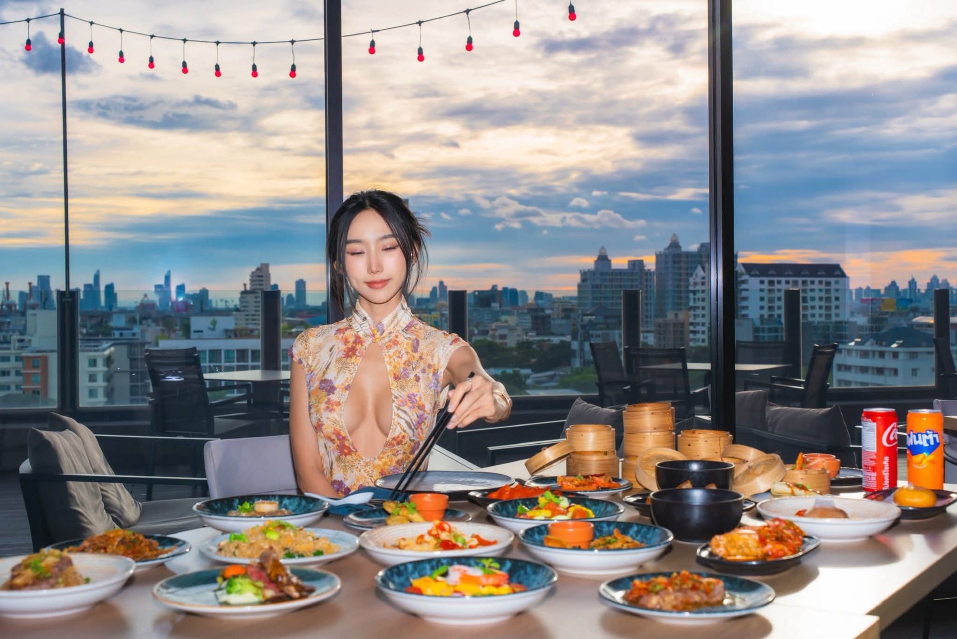 Tammy Pham shines brightly showcasing her alluring beauty by the high rise infinity pool She wears a charming polka dot two piece outfit both cute and subtly sensual With her long flowing hair and confident demeanor Tammy Pham captivates every gaze The stunning cityscape and distant ocean view further enhance her beauty This moment exudes relaxation and sophisticated style Tammy Pham posing by the infinity pool is enchanting fully displaying her graceful physique and radiant confidence The polka dot attire highlights her gentle femininity and captivating charm this is a beautiful and emotional photo capturing an ideal vacation